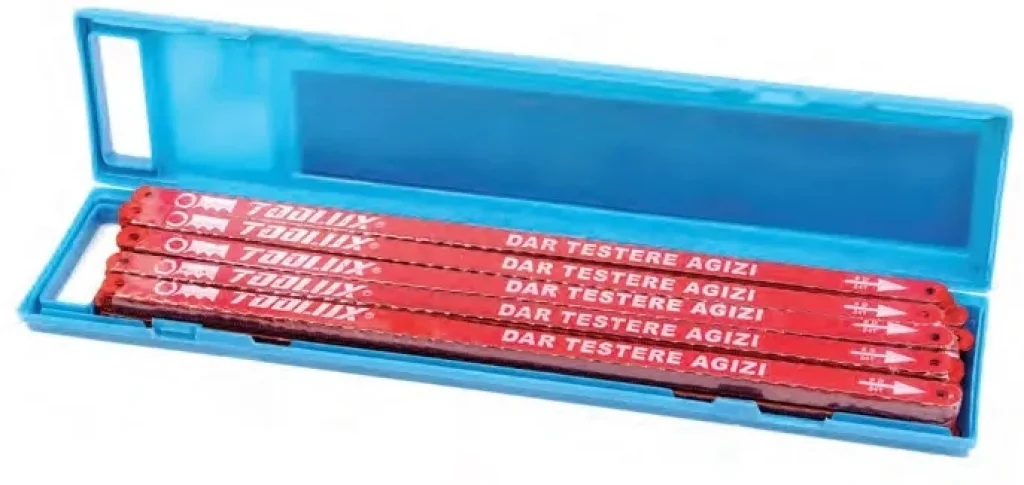 Dar Demir Testere Ağzı Çift Taraflı - 5 Adet ile demir, alüminyum ve diğer metal malzemeleri kolaylıkla kesebilirsiniz. Yüksek kaliteli çelikten üretilen bu testere ağızları, dayanıklılık ve keskinlik konusunda sizi yarı yolda bırakmaz.