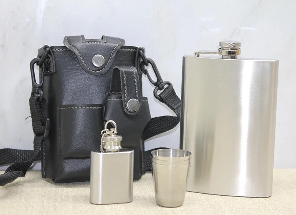 Deri Kılıflı Matara Seti Alk3928 Ürün Ölçüleri 15*9,5 Cm