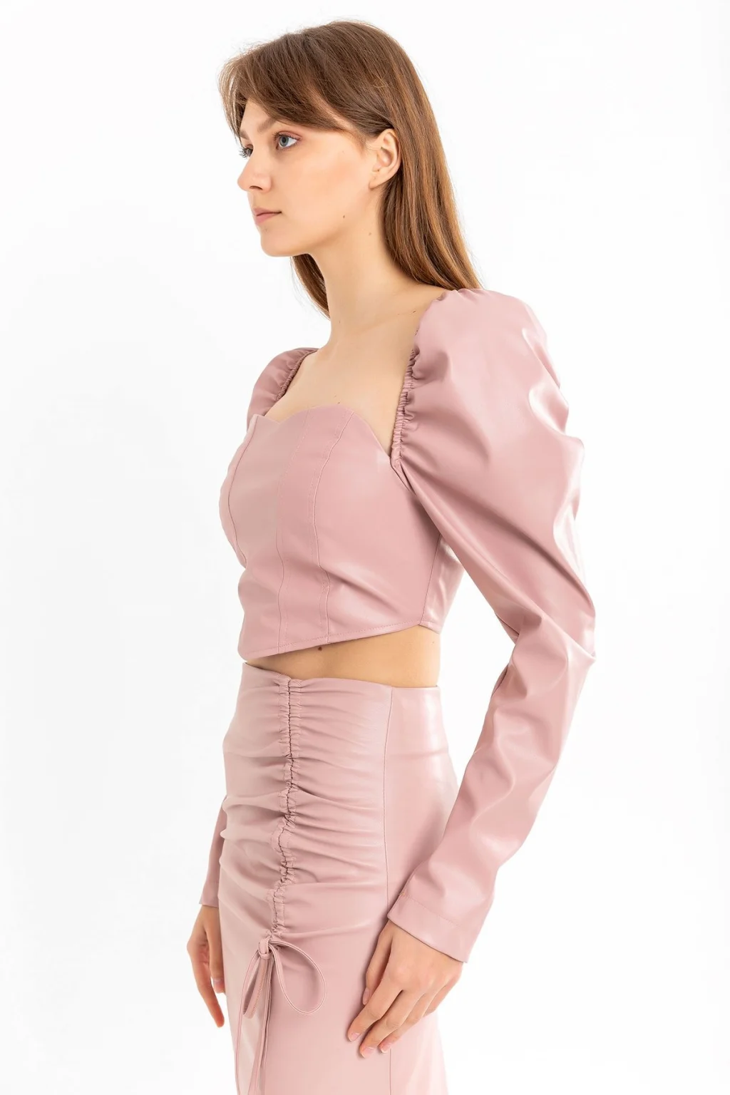 Deri Kumaş Uzun Kol Straplez Kalp Yaka Arkası Fermuar Detaylı Pudra Kadın Crop, şıklığı ve modern tasarımıyla göz dolduruyor. Kalp yaka ve straplez detayları, zarif bir siluet oluştururken, deri kumaşın sofistike dokusu şıklığı pekiştirir. Arkadaki fermuar detayı, hem estetik bir vurgu sağlar hem de pratik kullanım sunar. Toptan alım için mükemmel bir tercih olan bu crop, koleksiyonunuza hoş bir dokunuş katacak. Müşterileriniz bu şık crop'u özel davetler, gece etkinlikleri veya şık günlük kombinlerinde rahatça kullanabilirler. Sezonun trendlerine uygun bu ürün, moda tutkunlarının dikkatini çekecek ve gardıroplarının yıldızı olacak.