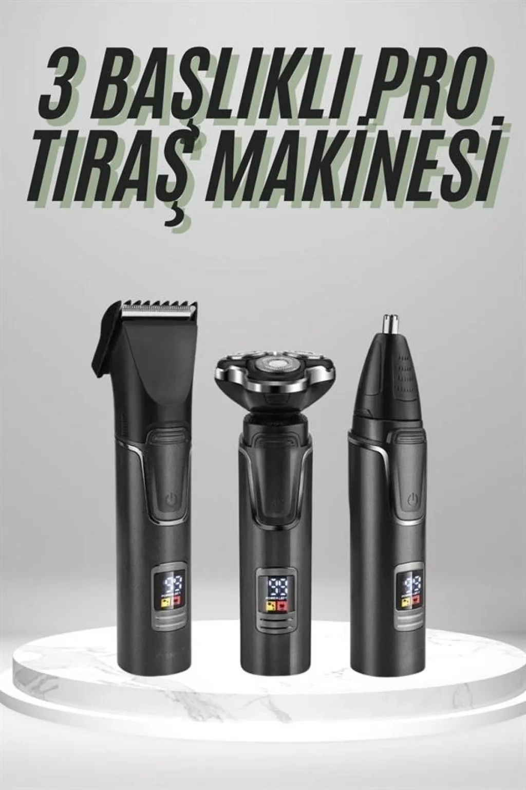 Dijital Göstergeli 3 Başlıklı Tıraş Makinesi Islak Kuru Lazer Öncesi Günlük