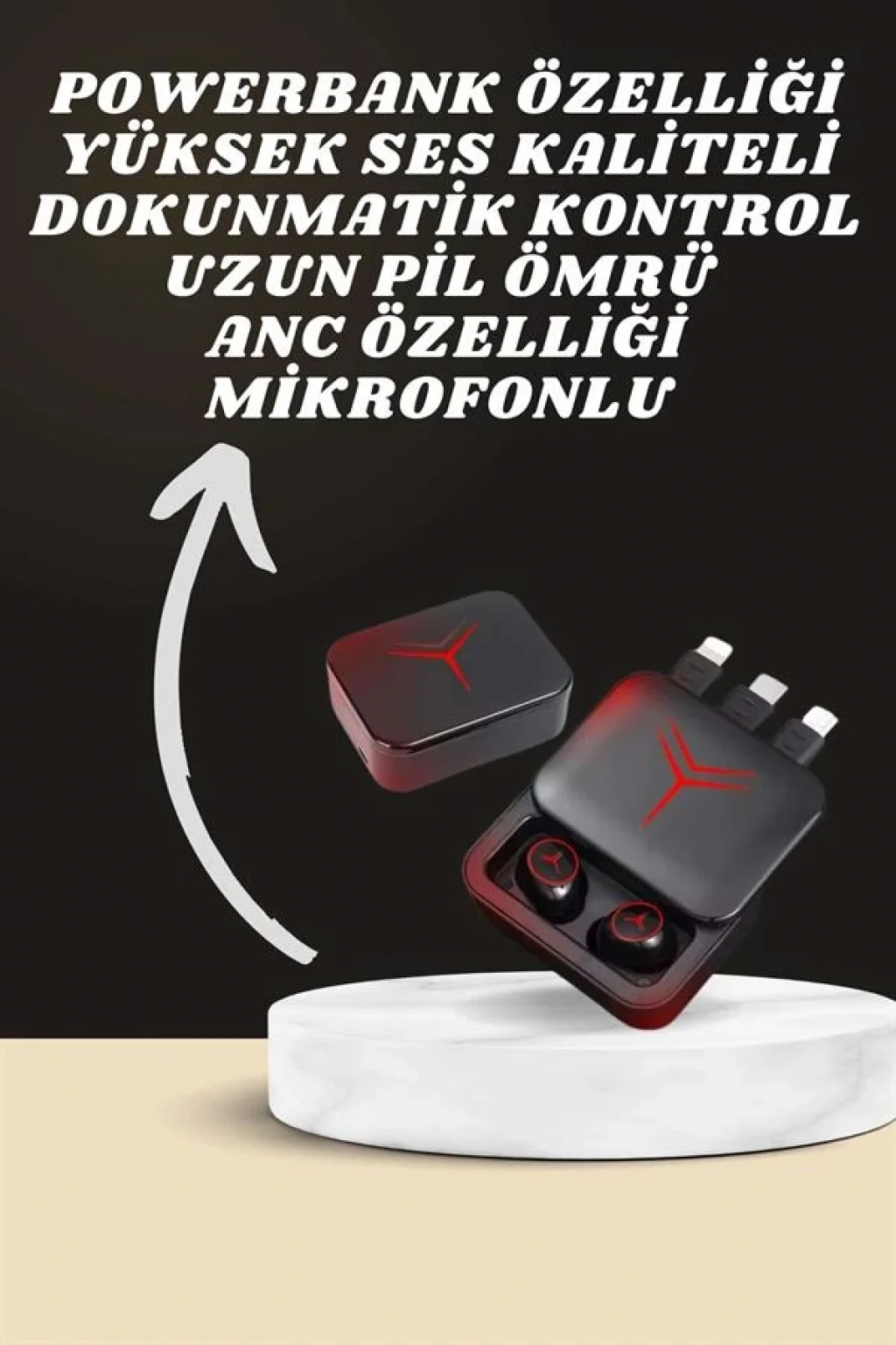Dijital Göstergeli Powerbank Kablosuz Kulaklık ve 7 Kordonlu Yeni Nesil Akıllı Saat Dokunmatik Kontrol