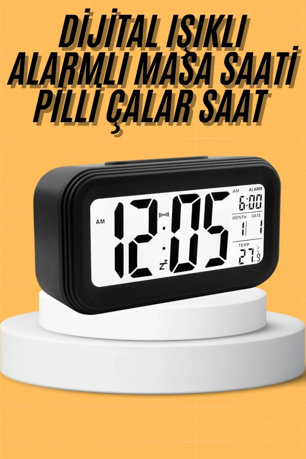 Modern tasarımı ve işlevsel özellikleriyle öne çıkan bu sensörlü dijital masa saati, büyük ekranıyla zamanı net bir şekilde görmenizi sağlar. Günlük kullanımda kolaylık sunan bu saat, özellikle karanlık ortamlarda da rahatça okunabilir yapısıyla dikkat çeker. Ekranını kendi ışığıyla aydınlatabilen sistem, dilediğinizde ışığı manuel olarak yakmanıza olanak tanır. Bu aydınlatma özelliği, aktif hale getirildikten sonra 6 saniye içerisinde otomatik olarak kapanarak hem enerji tasarrufu sağlar hem de geceleri rahatsız edici bir ışık yaymaz.Sadece saat göstermekle kalmayıp alarm fonksiyonuyla da sabahları zamanında uyanmanıza yardımcı olur. Ayrıca tarih ve ortam sıcaklığı göstergeleri sayesinde çok yönlü kullanım imkanı sunar. Kompakt yapısıyla masa üstünde fazla yer kaplamadan şık bir görünüm sağlar ve her ortamla uyum içinde kullanılır.Ürün ölçüleri 4,3 x 15,1 x 7,7 cm olup, 3 adet AA pil ile çalışır (piller pakete dahil değildir). Paket içeriğinde bir adet fotoselli dijital masa saati yer almaktadır. Hem ev hem ofis kullanımına uygun bu saat, fonksiyonel özellikleri ve pratik yapısıyla günlük yaşamınıza konfor katmak için ideal bir seçenektir.