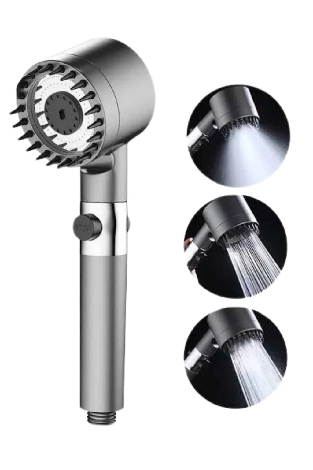Krom kaplama malzemesiyle üretilmiş olan bu duş başlığı, hem estetik görünümüyle banyonuza şıklık katarken hem de uzun ömürlü ve dayanıklı bir kullanım sunar. Paslanmaya karşı dirençli yapısı sayesinde ilk günkü parlaklığını uzun süre korur ve günlük kullanımda yüksek performans sağlar. Üç farklı masaj modu sayesinde duş keyfinizi bambaşka bir seviyeye taşıyan bu ürün; rahatlatıcı, canlandırıcı ve derin doku masajı seçenekleriyle kişisel konforunuzu ön plana çıkarır. Günün stresini üzerinizden atmak veya güne zinde başlamak için ihtiyacınıza göre kolayca modlar arasında geçiş yapabilirsiniz.Kullanıcı dostu tasarımı sayesinde kurulumu oldukça basittir; ekstra bir ekipmana gerek kalmadan dakikalar içinde monte edilebilir. Ergonomik tutuşu ve su tasarrufu sağlayan yapısıyla hem çevre dostu hem de ekonomik bir kullanım sunar. Pratik kullanımı sayesinde her banyoya kolaylıkla entegre edilebilen bu duş başlığı, fonksiyonel ve şık bir banyo aksesuarı arayanlar için ideal bir seçimdir.