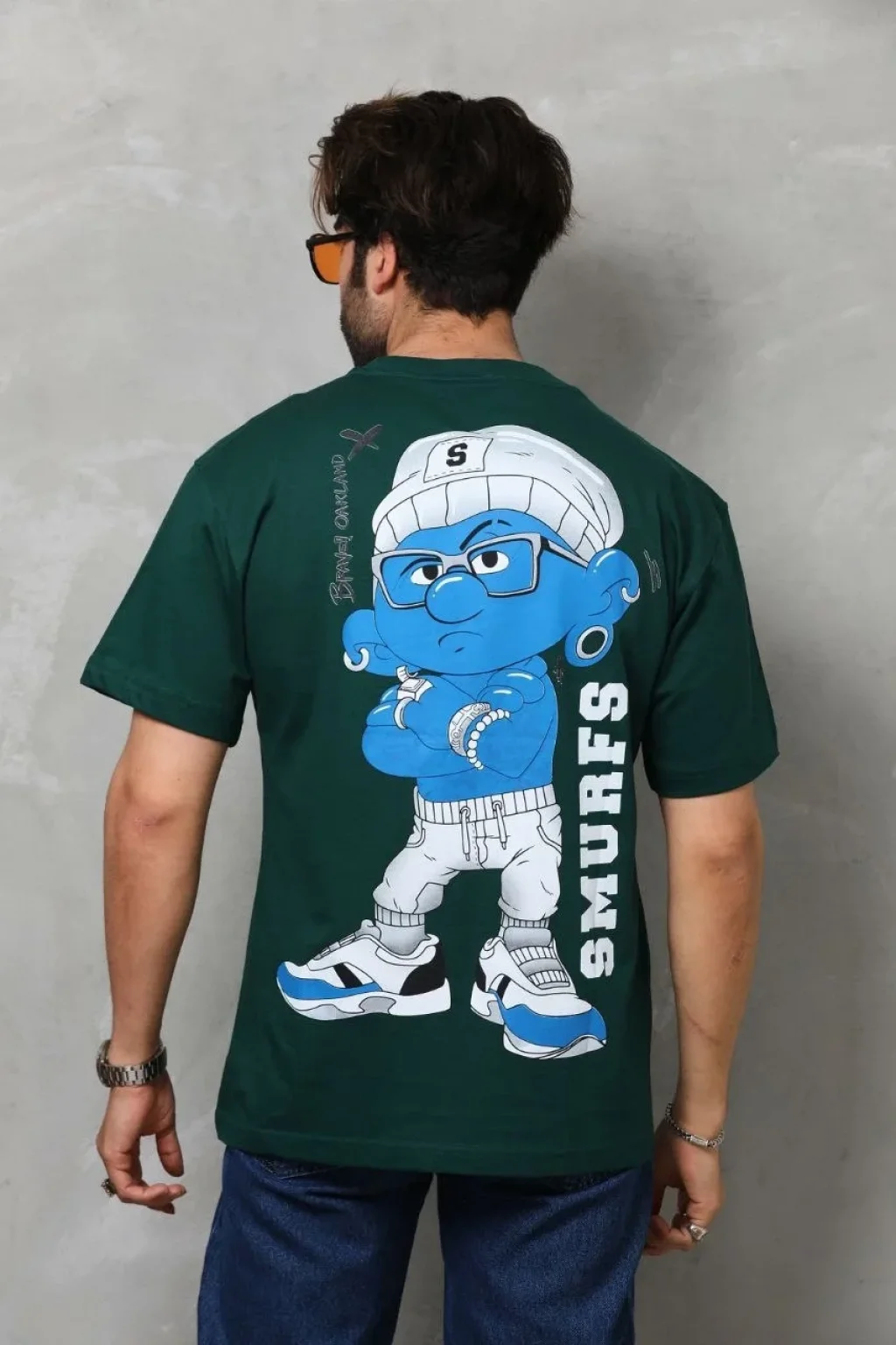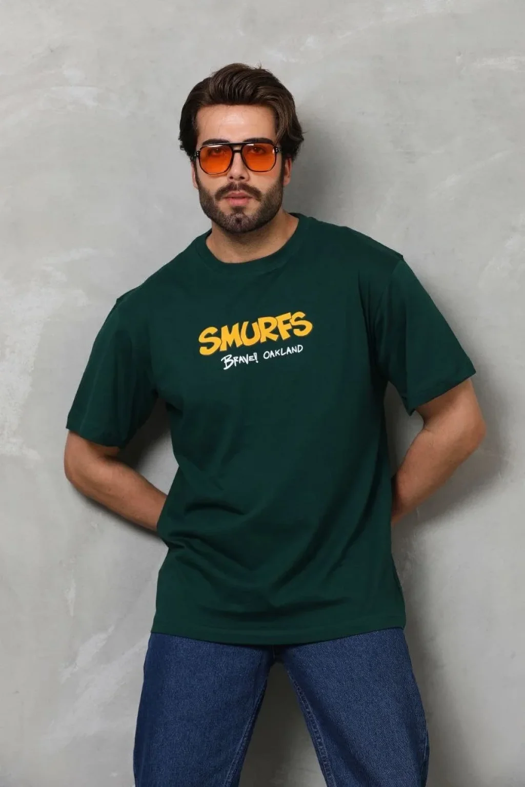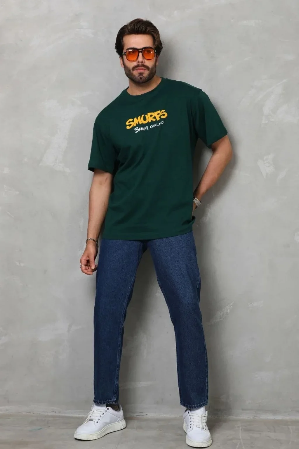 Erkek Kısa Kol Yazlık Tişört Bisiklet Yaka Baskılı Oversize T-Shirt - Yeşil