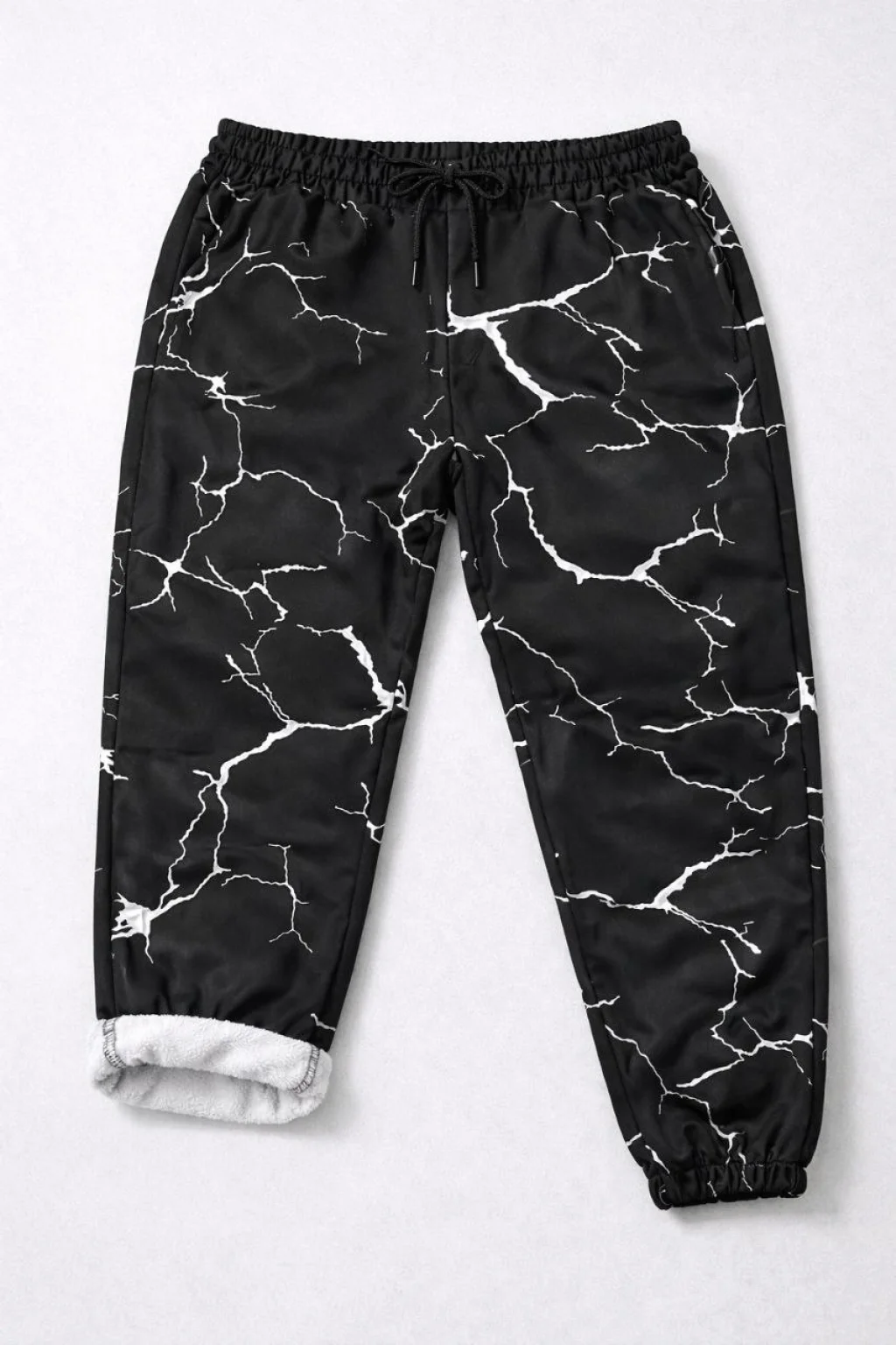 Erkek Dijital Baskılı Eşofman Altı Kışlık Üç İplik Şardonlu Kumaş Lastikli Paça, Cepli, Rahat Kalıp - Siyah