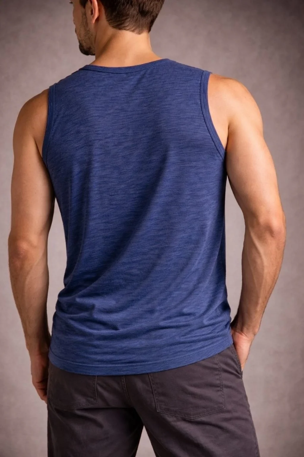Erkek Flamlı Kumaş Sıfır Kolsuz Atlet Basic Spor Üst, Günlük ve Fitness Kullanımına Uygun - İndigo