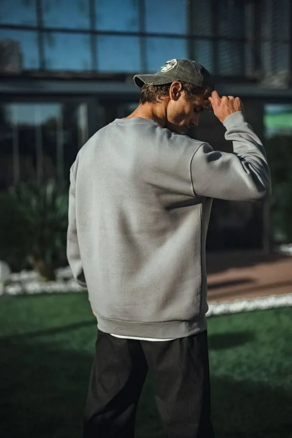 Erkek Bisiklet Yaka 3 İplik pamuklu Basic SweatShirt - Boyalı Gri