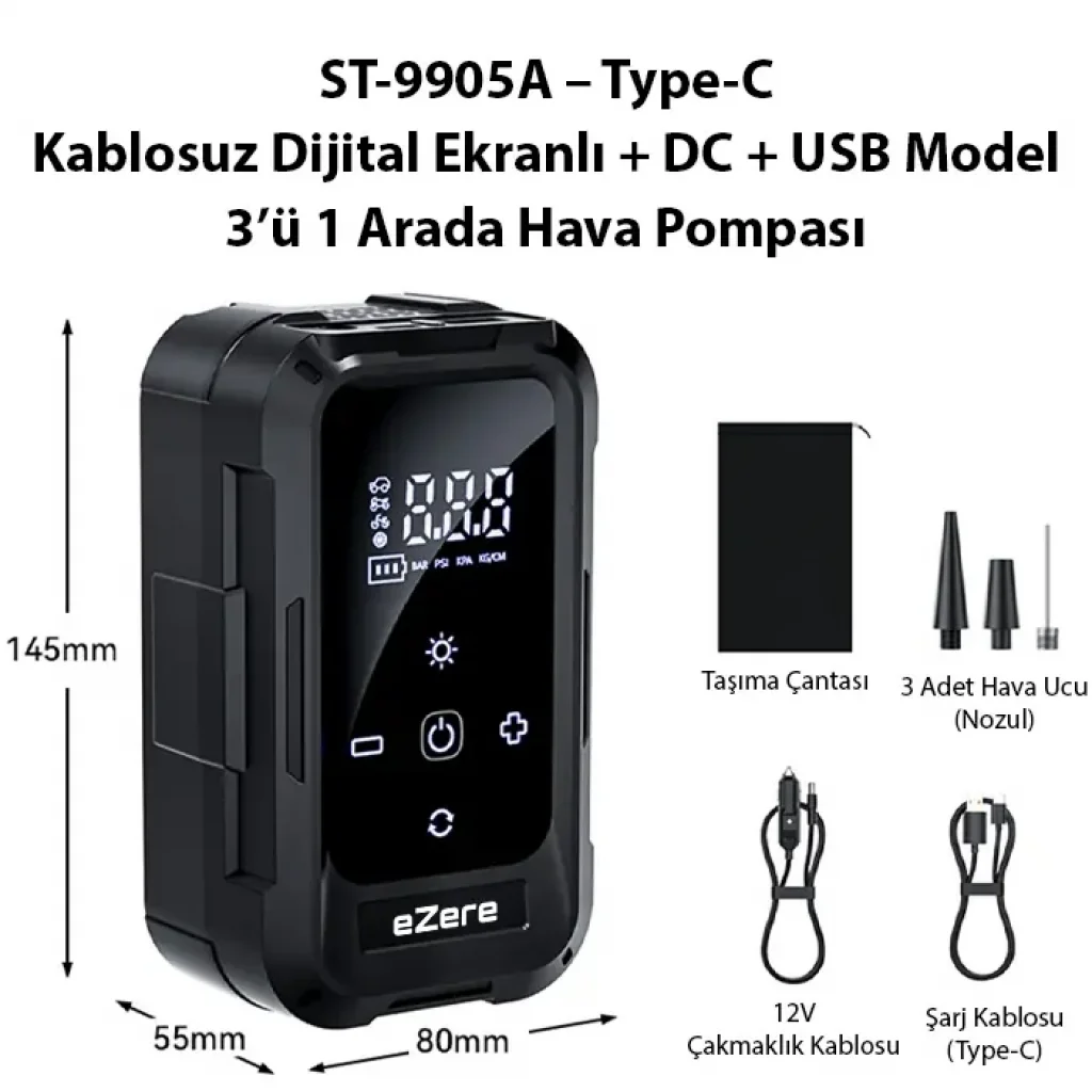 EZERE AirForce Pump Taşınabilir Araba yüksek güçlü elektrikli kablosuz lastik hava pompası-(5775)