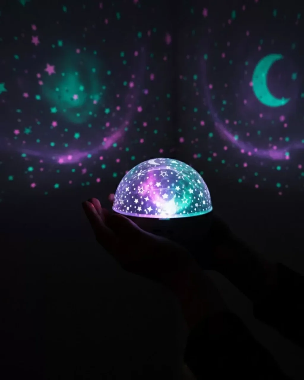 Döner Galaxy Projektör Gece Lambası – Ay ve Yıldız Işıklı Atmosfer Lamba USB Bağlantılı