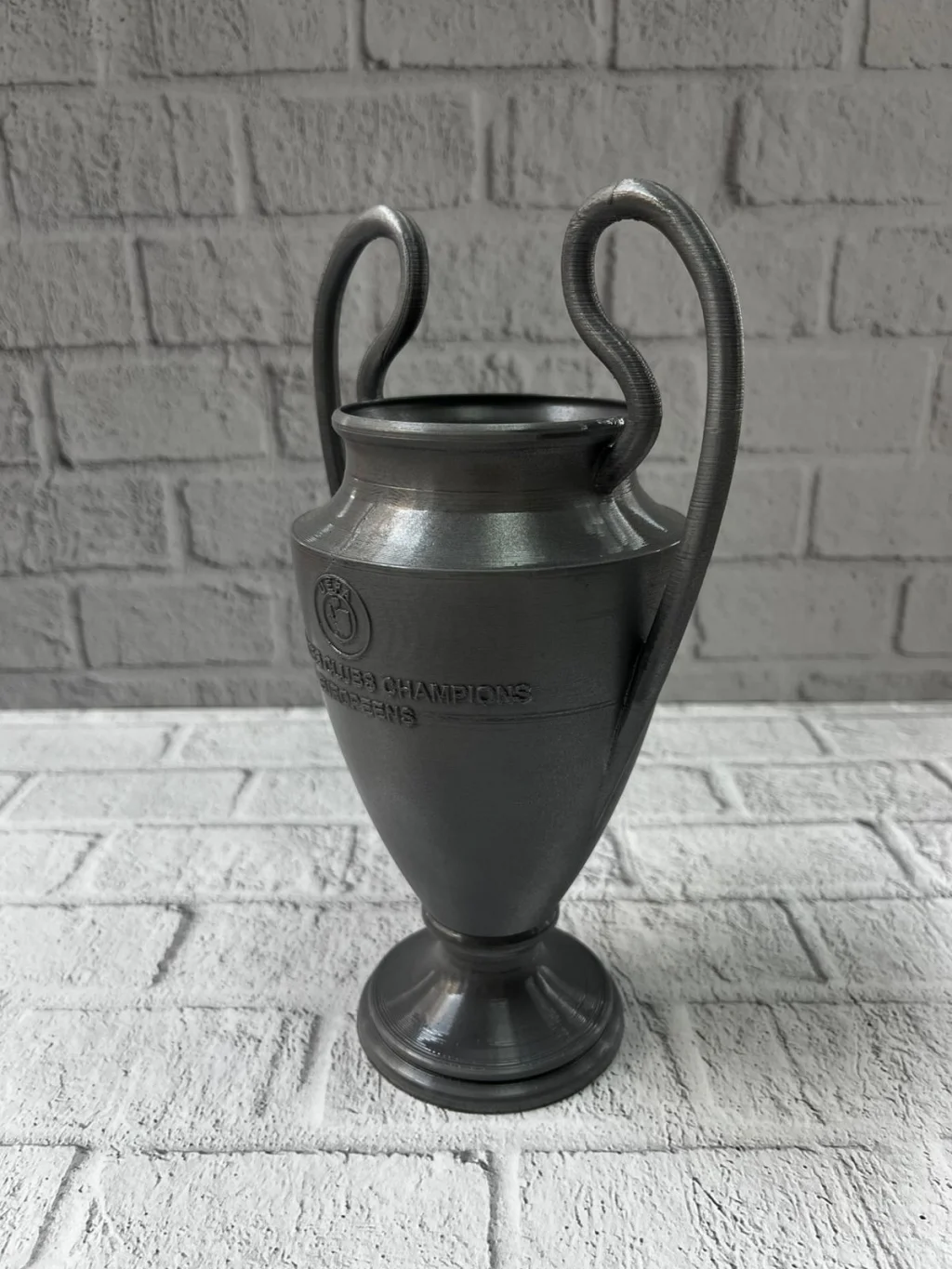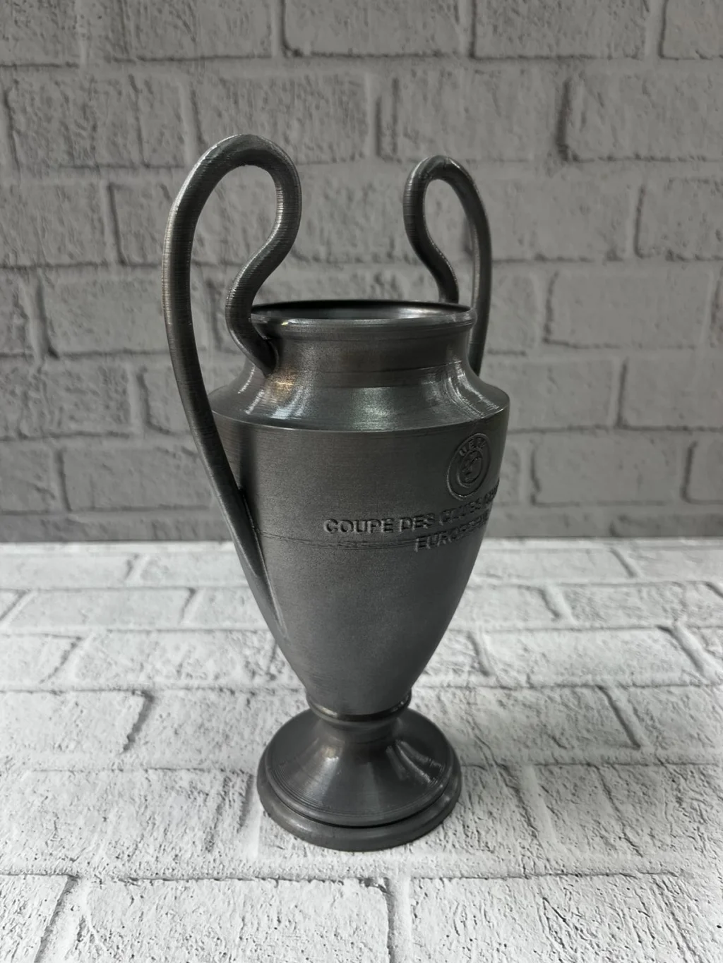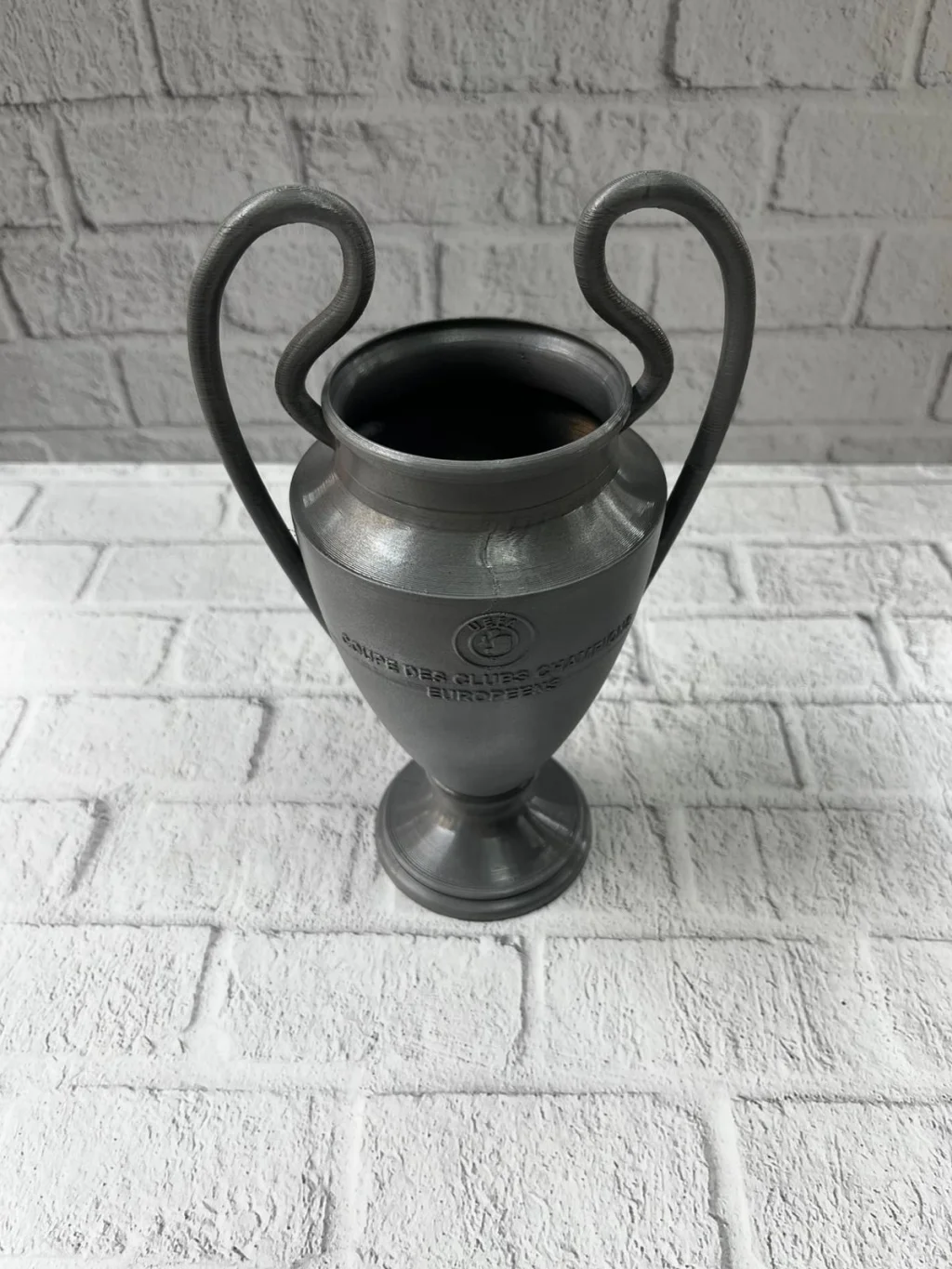 UEFA model esintili Füme Kupa 25 cm, minimal renk tonu ve zarif formuyla spor atmosferini dekorasyona taşıyan özel bir üründür. Hem klasik hem modern ortamlara uyum sağlayabilen tasarımıyla dikkat çeker. Kupayı tanımlayan uzun kulplar ve gövde üzerindeki kabartma detaylar, ürünün gerçekçi ve koleksiyonluk bir değer taşımasını sağlar. Çalışma masasında motivasyon simgesi, vitrinlerde koleksiyon ürünü, spor temalı etkinliklerde sembolik ödül olarak kullanılabilir. Şık görünümü sayesinde hem kadın hem erkek kullanıcılara hitap eder. Ev dekorasyonu için güçlü bir tamamlayıcı objedir.