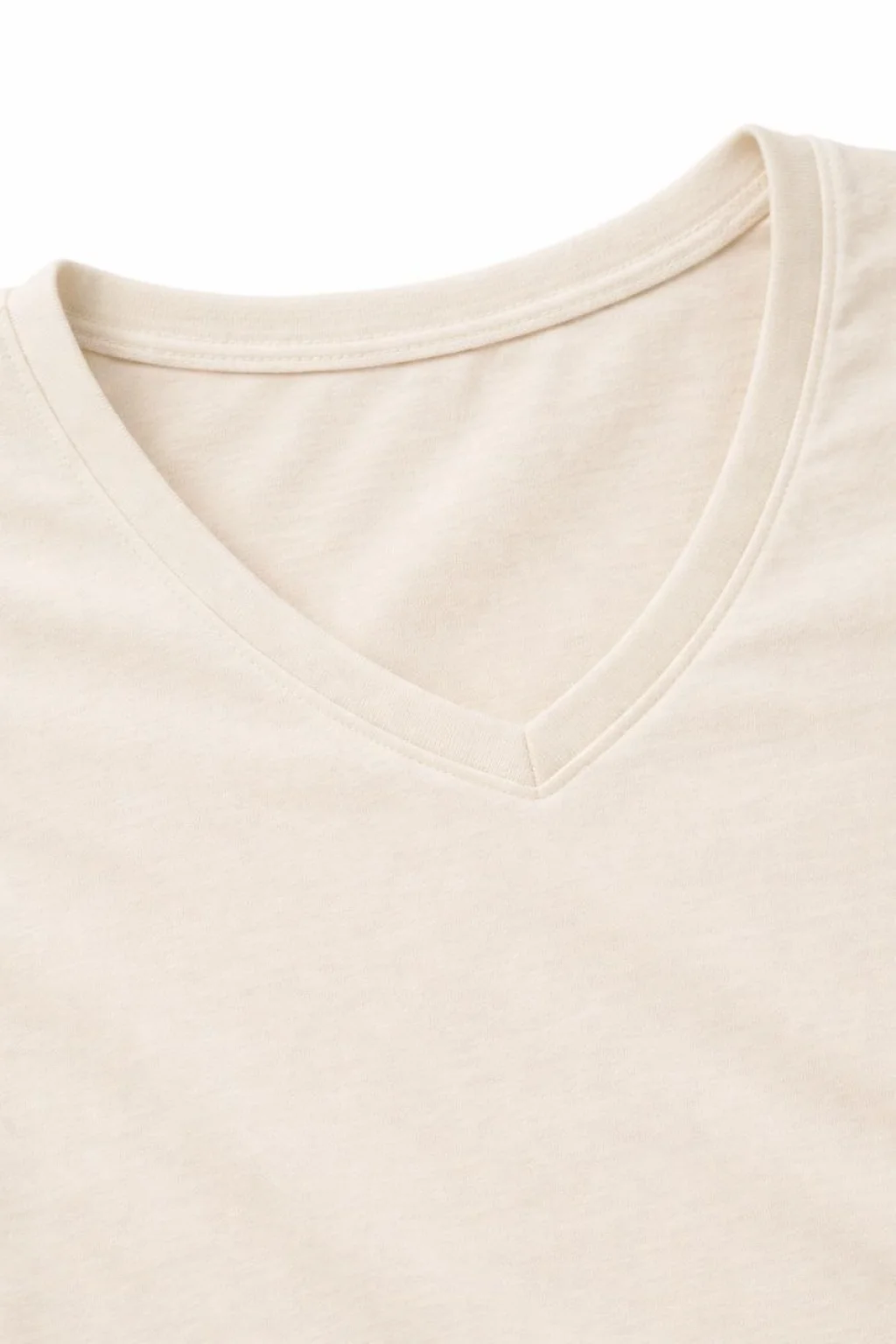 Genç Kız Çocuk V Yaka Tişört Yazlık Model Günlük Basic Body - Taş
