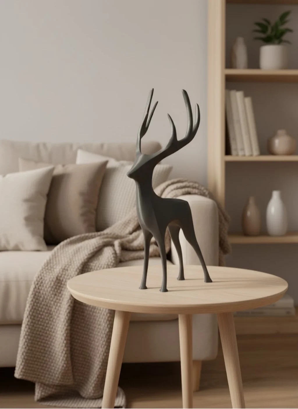 Gri Geyik Figürü, doğal formlardan ilham alan modern tasarımıyla ev dekorasyonuna zarif bir dokunuş ekler. 12×24 cm boyutu sayesinde salon, oturma odası veya ofis ortamlarında rahatlıkla sergilenebilir. Dengeli ölçüleri, ürünü hem tek başına hem de dekoratif objelerle birlikte kullanıma uygun hale getirir.Mat gri rengi, mekâna sakin ve sofistike bir atmosfer kazandırır. Ahşap, metal veya cam yüzeylerle uyum sağlayarak dekorasyonda bütünlük oluşturur. Özellikle raf, konsol veya masa üstü kullanımında dikkat çekici ama sade bir görünüm sunar. Cozy salon konseptleri için ideal bir tamamlayıcıdır.Sağlam yapısı uzun ömürlü kullanım sağlarken, hafif yapısı sayesinde kolayca yer değiştirilebilir. Dekorasyonunu yenilemek isteyenler veya şık bir hediye arayanlar için estetik ve fonksiyonel bir seçenektir.