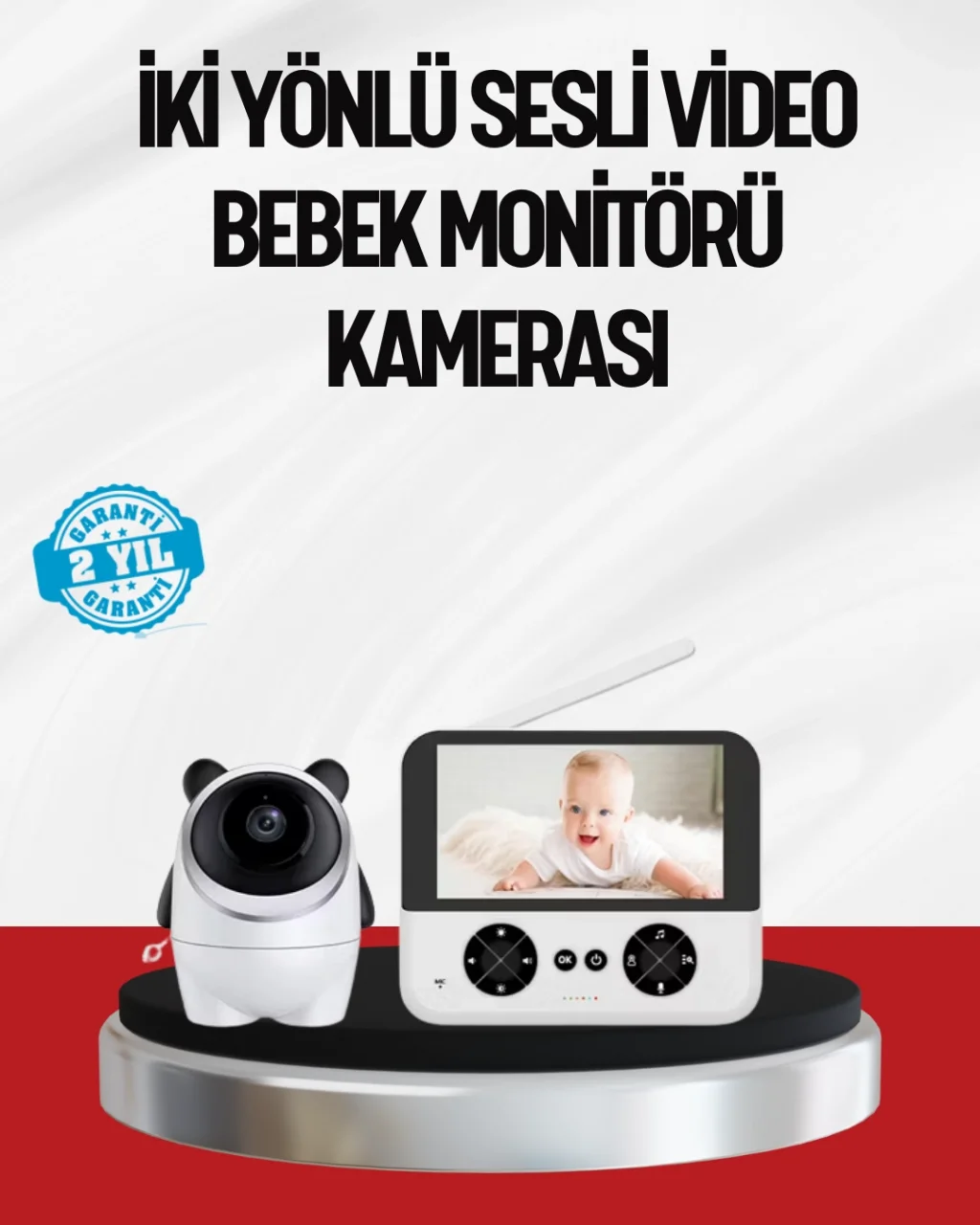 Görüntülü bebek monitörü, yüksek çözünürlüklü kamera ve geniş ekranı ile ebeveynlere güvenli bir izleme deneyimi sunar. 720P görüntü kalitesi sayesinde bebeğinizin yüz ifadelerini ve hareketlerini net bir şekilde görebilirsiniz. Geniş ekran tasarımı, uzun süreli kullanımlarda göz yormayan bir deneyim sağlar.Gece görüş özelliği, karanlık ortamlarda bile kesintisiz izleme imkânı sunar. Ağlama algılama fonksiyonu, bebeğinizin ihtiyaçlarına hızlı şekilde yanıt vermenize yardımcı olur. Uzaktan kamera kontrolü ile odanın farklı noktalarını rahatlıkla görüntüleyebilirsiniz.İki yönlü sesli iletişim sayesinde bebeğinizle konuşabilir, kendinizi yanında hissetmesini sağlayabilirsiniz. Ninni özelliği, bebeğin daha huzurlu uyumasına destek olur. Sıcaklık sensörü, ortam koşullarını takip ederek bebeğiniz için konforlu bir alan oluşturmanıza yardımcı olur.4x zoom, alarm ve saat fonksiyonları günlük ebeveyn rutinlerini kolaylaştırır. Kablosuz bağlantı yapısı sayesinde evin farklı odalarından rahatlıkla izleme yapılabilir.Bu bebek kamerası, güvenlik, konfor ve pratikliği bir arada arayan ebeveynler için ideal bir üründür.