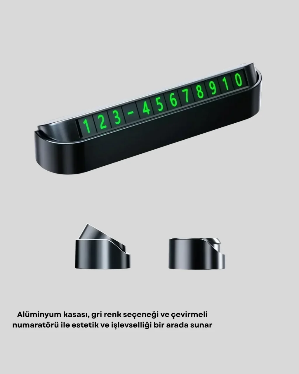 Gri Alüminyum Araç İçi Telefon Numaratörü – Dayanıklı Modern ve Net Görünürlük Sağlayan Tasarım