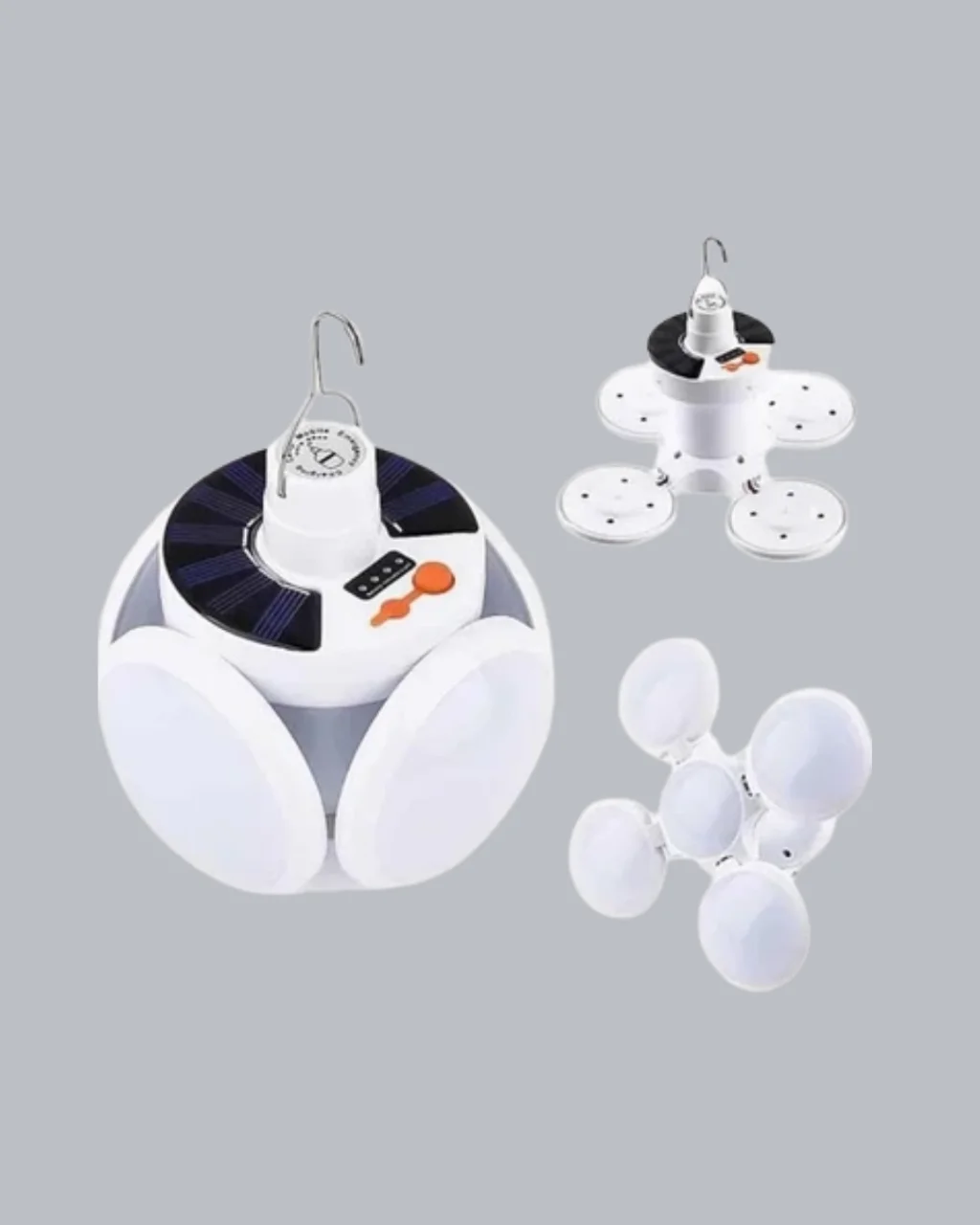 Bu LED kamp lambası, taşınabilirliği ve kullanım kolaylığıyla öne çıkar. Katlanabilir 5 kanatlı yapısı sayesinde ışık açısını dilediğiniz gibi ayarlayabilir, geniş veya odaklı aydınlatma sağlayabilirsiniz. Askı halkasıyla çadırınıza, balkona veya tavan kancasına kolayca asabilirsiniz. Katlandığında kompakt hale gelir ve çok az yer kaplar. Hem güneş enerjisiyle hem de USB kabloyla şarj olabilen çift şarj sistemiyle her yerde kullanılabilir. 2400 mAh lityum pili tam şarjla 6-8 saat kesintisiz ışık sunar. 5 farklı ışık modu sayesinde ister kamp alanında, ister bahçede, ister elektrik kesintilerinde kullanabilirsiniz. IP65 su geçirmez yapısı, açık havada güvenli kullanım sağlar. Güçlü LED teknolojisi sayesinde enerji tasarrufu sağlar, doğayla dost bir çözümdür.