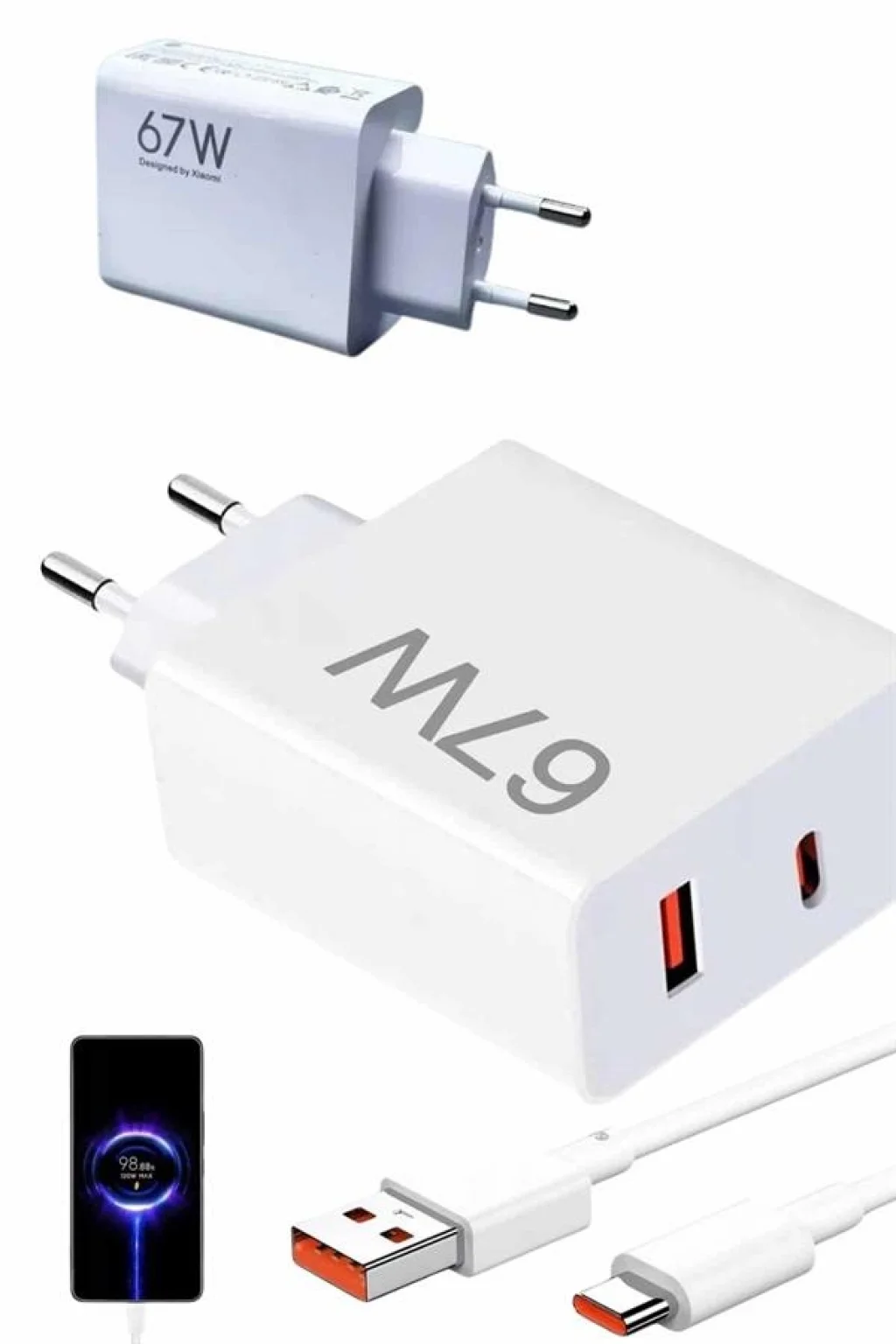 Hızlı Şarj Aleti Adaptörü Kablo Seti 67W Uzun Ömürlü Beyaz