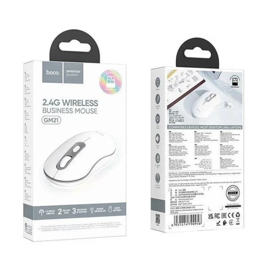 HOCO GM21 Platinium 1600dPi 2.4G Bluetooth Kablosuz Optik Mouse-(5775)