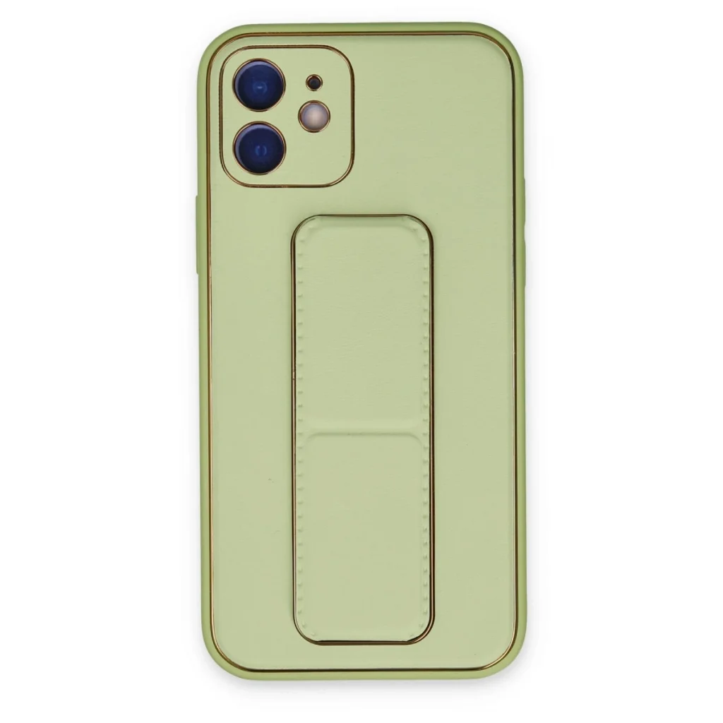 İphone 12 Kılıf Coco Deri Standlı Kapak - Su Yeşili