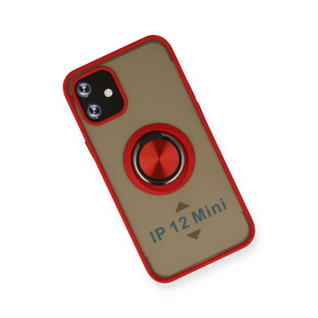 İphone 12 Mini Kılıf Montreal Yüzüklü Silikon Kapak - Kırmızı