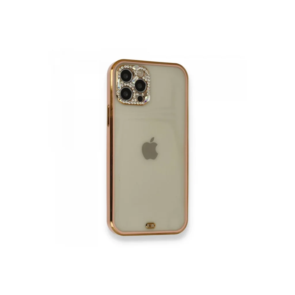 İphone 12 Pro Kılıf Liva Taşlı Silikon - Pembe