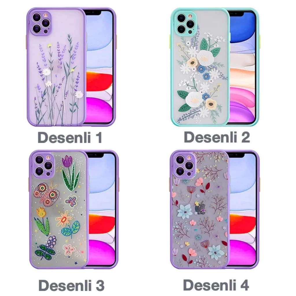 iPhone 12 Pro Max 6.7inç Kamera Korumalı Çiçek Desenli Silikon Kılıf-(5775)