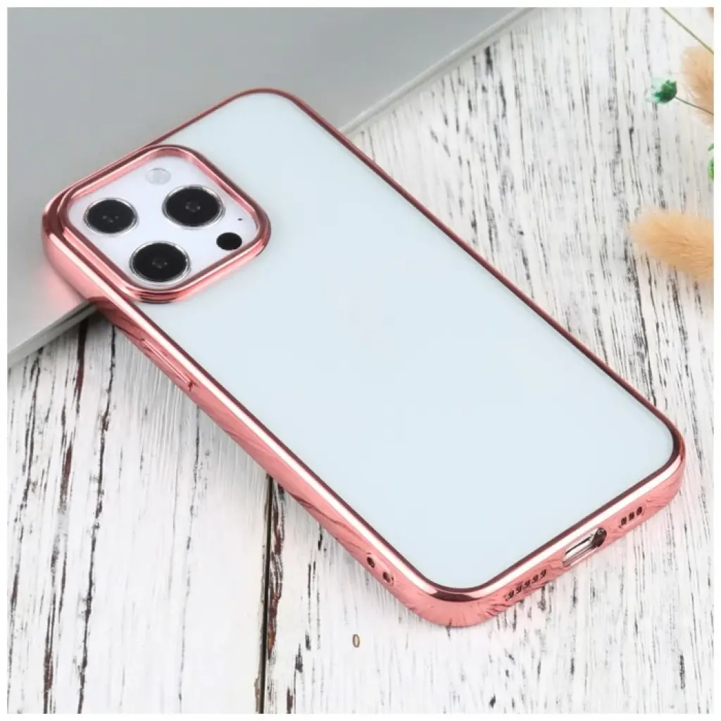 iPhone 13 Pro 6.1inç Lazer Kaplama Renkli Kenar Şeffaf Kılıf-(5775)