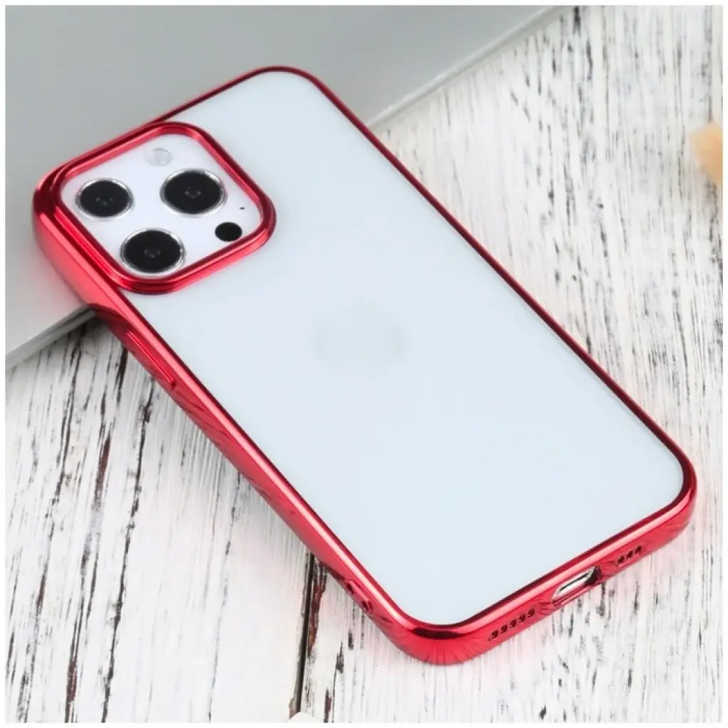 iPhone 13 Pro Max 6.7inç Lazer Kaplama Renkli Kenar Şeffaf Kılıf-(5775)