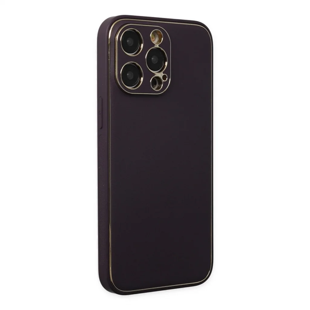 İphone 13 Pro Max Kılıf Coco Deri Silikon Kapak - Derin Mor