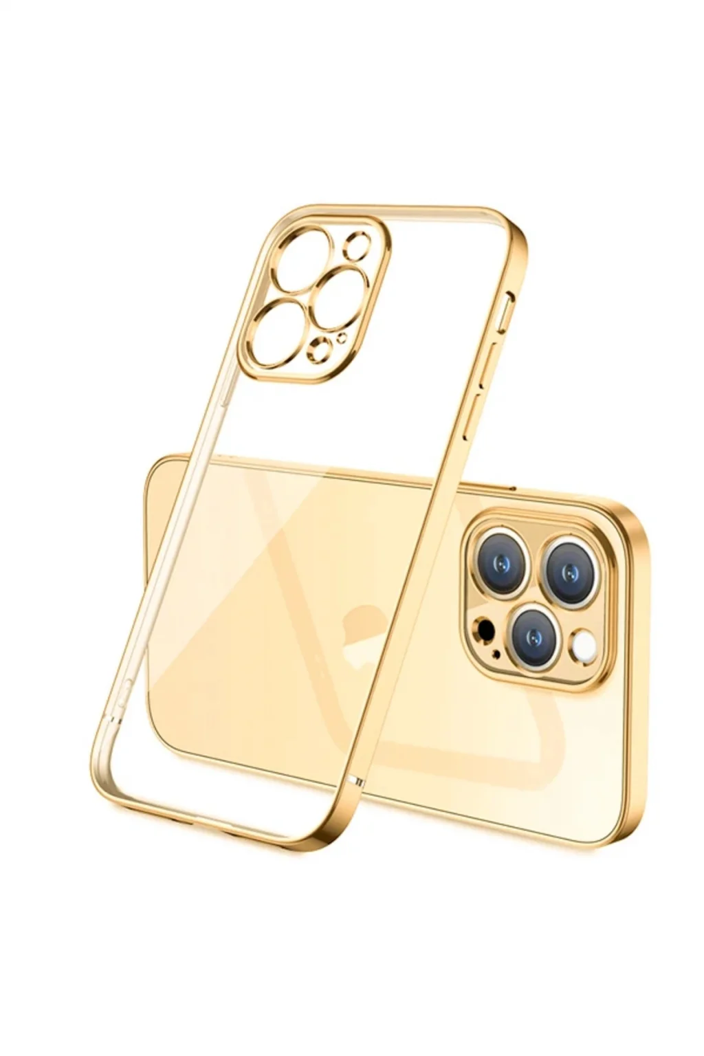 iPhone 13 Pro Renkli Kenar Şeffaf Kılıf Kamera Korumalı Silikon Kılıf