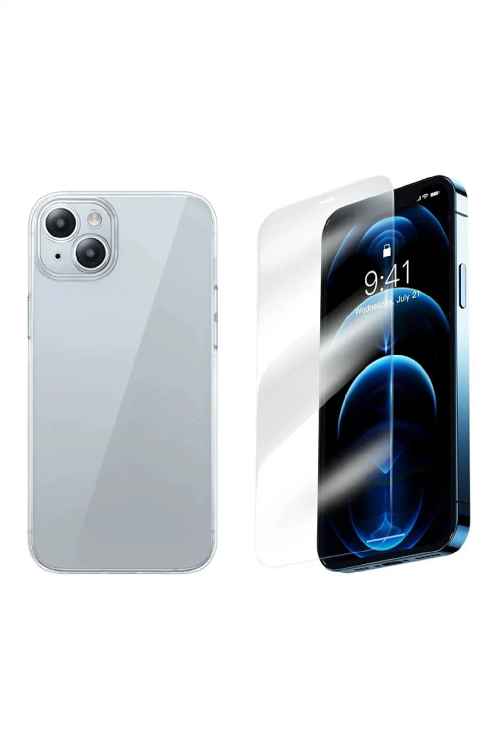 iPhone 15 Plus Corning Serisi Silikon Kılıf + Tempered Ekran Koruyucu Set-(5775) - captainsmoda16