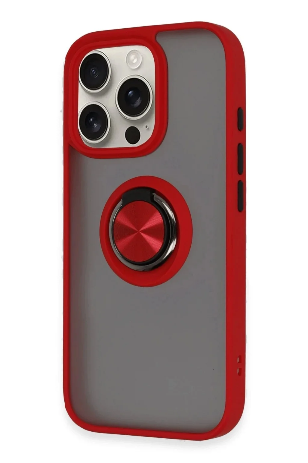 iPhone 16 Pro Kılıf Montreal Yüzüklü Silikon Kapak - Kırmızı-(5796) - EMTHBA8772-8834