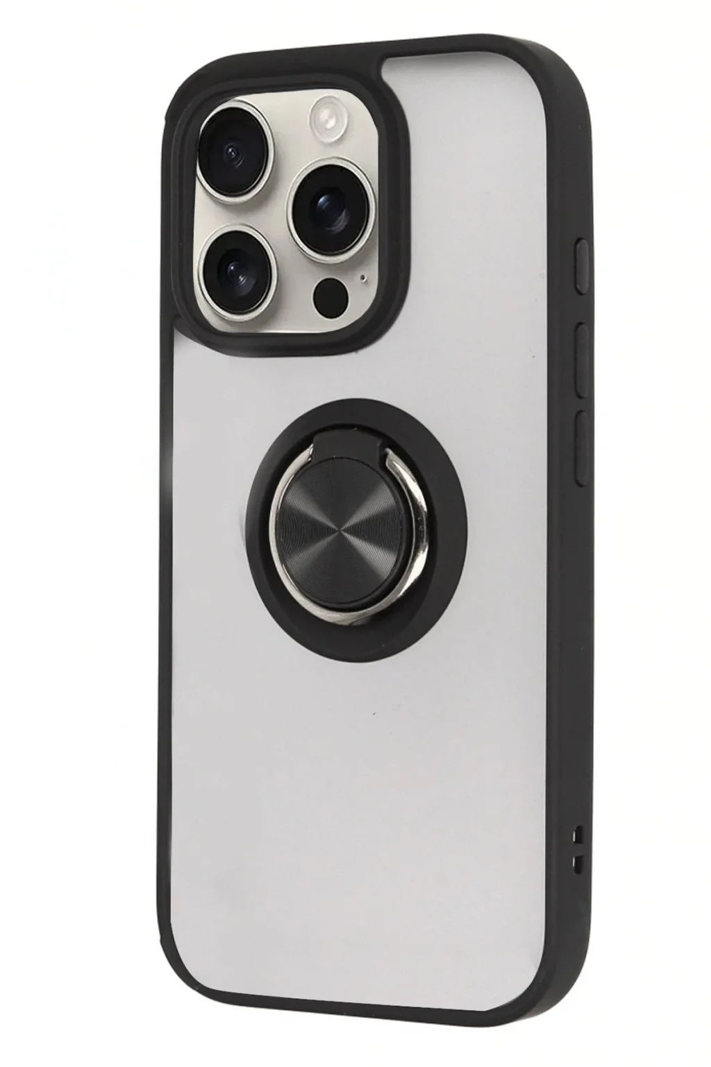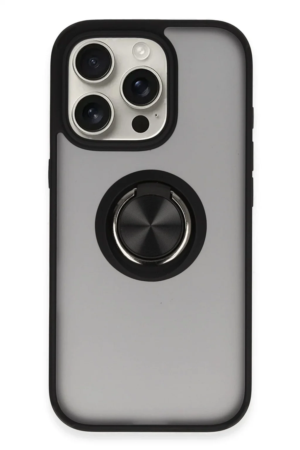 iPhone 16 Pro Kılıf Montreal Yüzüklü Silikon Kapak - Siyah-(5796) - EMTHBA1835-7946
