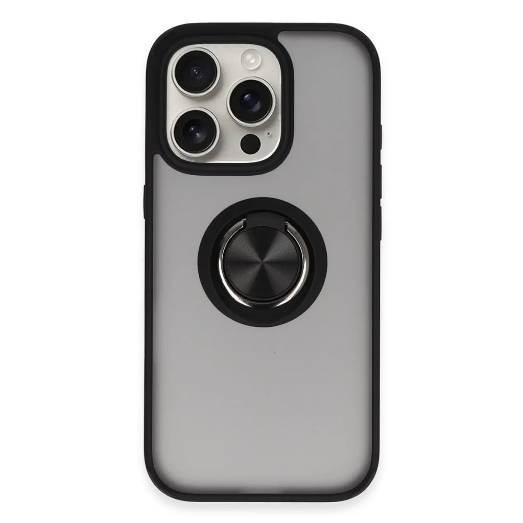 İphone 16 Pro Max Kılıf Montreal Yüzüklü Silikon Kapak - Siyah