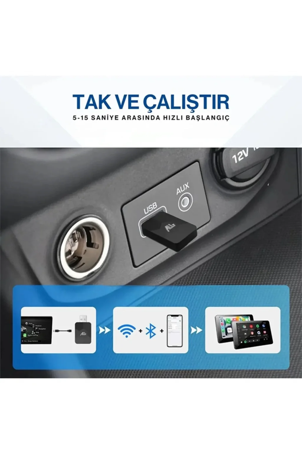 Kablosuz CarPlay & Android Auto Adaptörü - Apple ve Android Cihazlar İçin Evrensel Wireless Carplay Çevirici