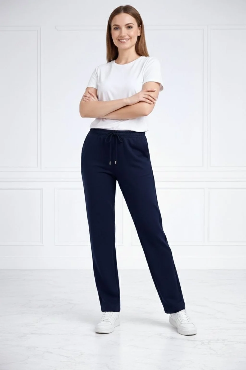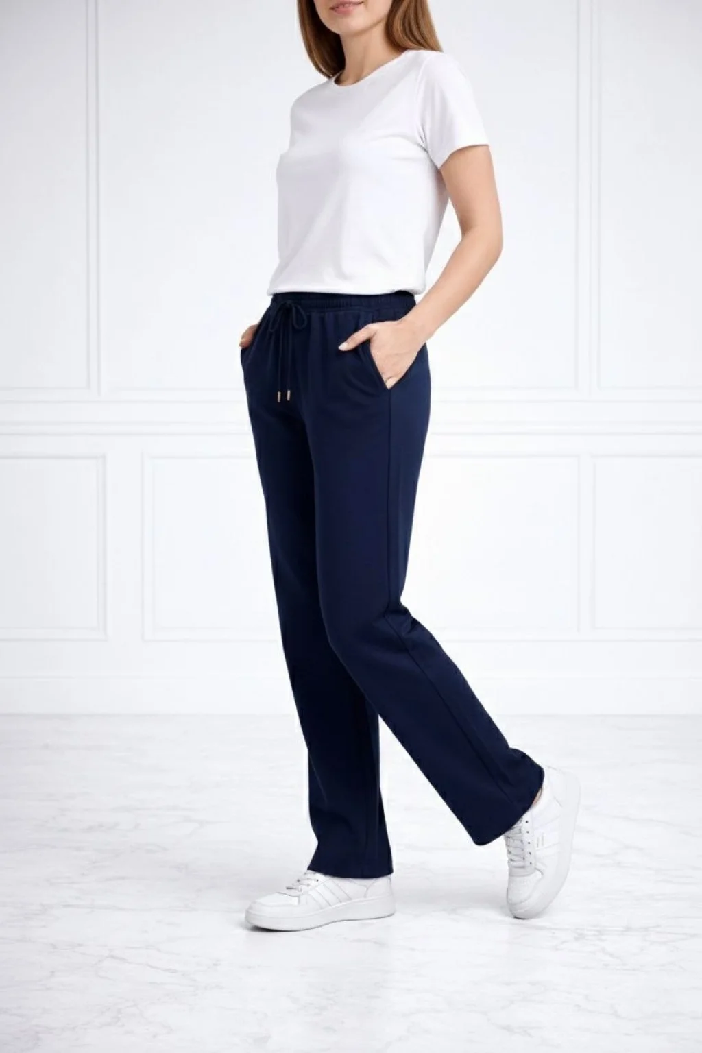 Kadın Düz Paça Beli Lastikli İpli Günlük Spor Eşofman Altı Rahat Fit - Lacivert