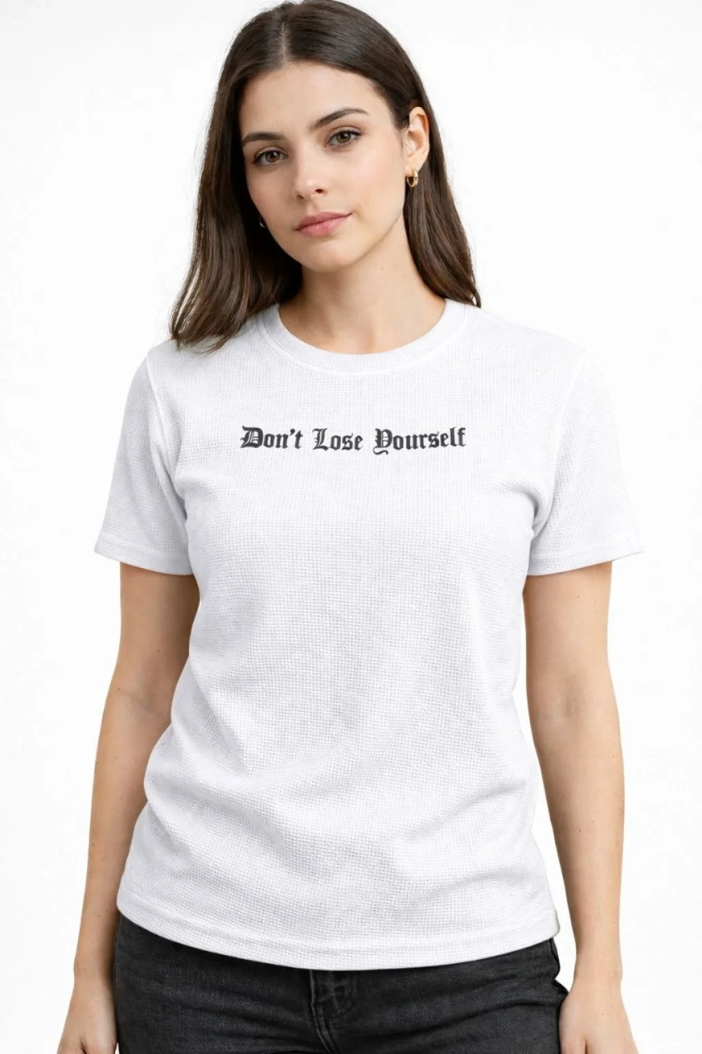 Kadın Wafıl Kumaş Tişört Regular Kalıp Bisiklet Yaka Baskılı Günlük Basic T-Shirt - Beyaz