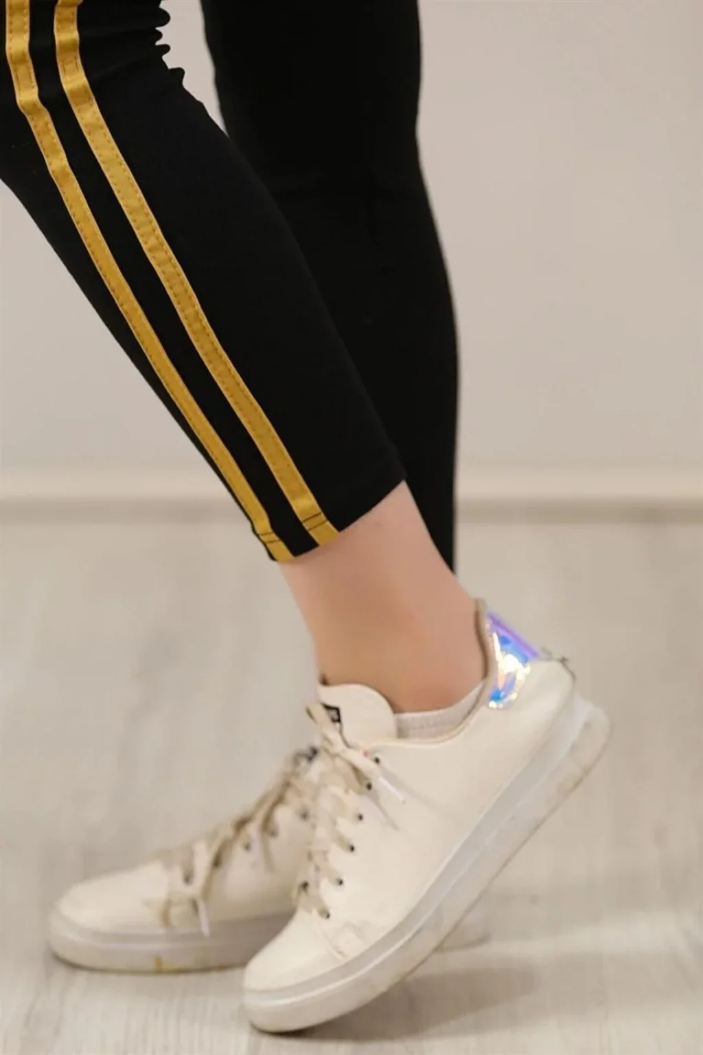 Kadın Yanı Sarı Şeritli Tayt - Siyah