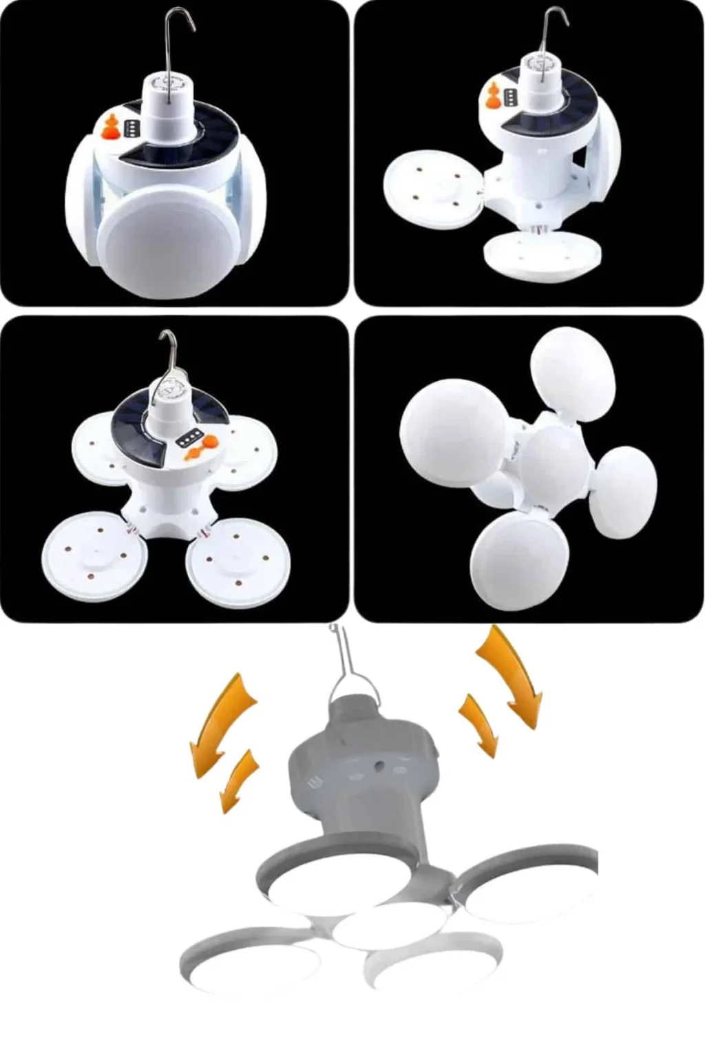 Solar Güneş Enerjisi ve USB Şarjlı 5 Kanatlı Taşınabilir Lamba – Çok Fonksiyonlu, Dayanıklı ve Çevre Dostu AydınlatmaHer türlü açık hava etkinliği, acil durumlar ve günlük yaşamda ihtiyaç duyduğunuz aydınlatmayı sağlayacak pratik bir çözüm arıyorsanız, Solar Güneş Enerjisi ve USB Şarjlı 5 Kanatlı Taşınabilir Lamba tam ihtiyacınızı karşılayacak özelliklere sahip! Güneş enerjisiyle veya USB ile şarj edilebilir özelliğiyle her koşulda güvenilir bir ışık kaynağı sunan bu lamba, taşınabilirliği ve pratik kullanımıyla ön plana çıkar.5 kanatlı tasarım, ışığı geniş bir alana yayarak daha etkili bir aydınlatma sağlar. Ayrıca, katlanabilir özellik sayesinde ışık açısını istediğiniz gibi ayarlayabilir ve karanlık alanlarda daha geniş bir bölgeyi rahatlıkla aydınlatabilirsiniz. Askı aparatı ile dilediğiniz yere asarak kolayca kullanabilirsiniz. Bu özellik, özellikle kamp, piknik ve açık hava etkinlikleri için son derece kullanışlıdır.Güneş enerjisiyle şarj etme özelliği, doğa dostu bir kullanım sunar. Ayrıca, USB şarj seçeneği ile hızla enerji depolayabilir, acil durumlarda her zaman kullanıma hazır olmasını sağlayabilirsiniz. Ürün, su geçirmez IP65 özelliğiyle dış mekan koşullarına dayanıklıdır, bu sayede yağmurda bile güvenle kullanılabilir.45 LED ışık kaynağı, ışığın parlaklığını artırarak etrafınızı net bir şekilde aydınlatır ve 6500K renk sıcaklığı ile etkili bir görüş sağlar. 6-8 saat çalışma süresi ile uzun süreli kullanım imkânı sunar.Teknik Özellikler:Güneş Paneli: 5.5V polikristal silikon güneş paneliPil: 18650 lityum pil, 2400mAhIşık Kaynağı: 45 LEDÇalışma Süresi: 6-8 saatŞarj Süresi: Solar şarj için 8 saat / USB şarj ile 6 saatŞarj Yöntemi: Solar şarj (DC 3.5V) / USB şarj (voltaj 4.5V)Su Geçirmezlik: IP65Renk Sıcaklığı: 6500KÜrün Boyutu: 14 cm * 11.5 cmPaket İçeriği:1 Adet 5 Kanatlı Solar Pratik LambaDoğada, evinizde ya da acil durumlarda kullanabileceğiniz bu solar lamba, yüksek verimliliği, dayanıklılığı ve esnek kullanım özellikleri ile her zaman yanınızda olması gereken bir aydınlatma aracı olacaktır. Hem güneş enerjisiyle hem de USB şarj ile enerji toplama seçenekleri sayesinde her durumda işinizi kolaylaştırır.