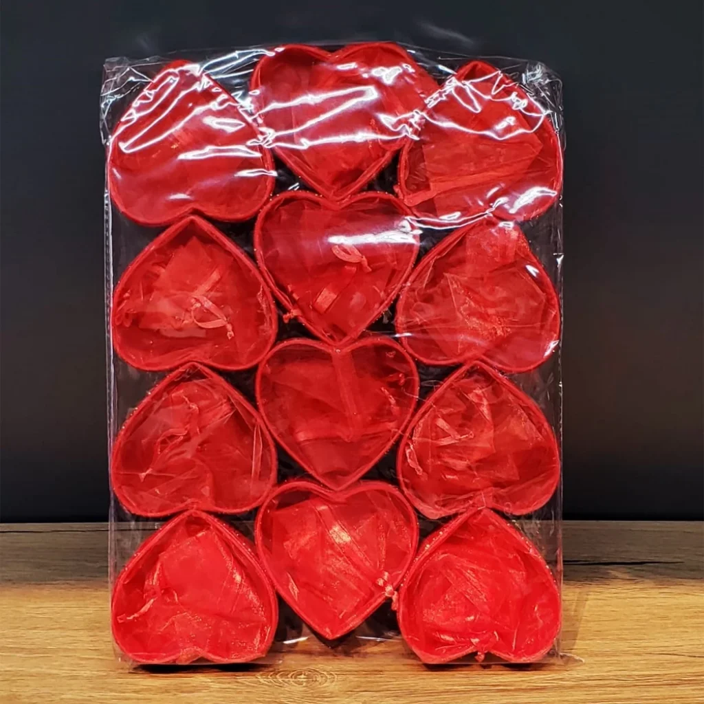 Kırmızı Kalpli Tül Kese