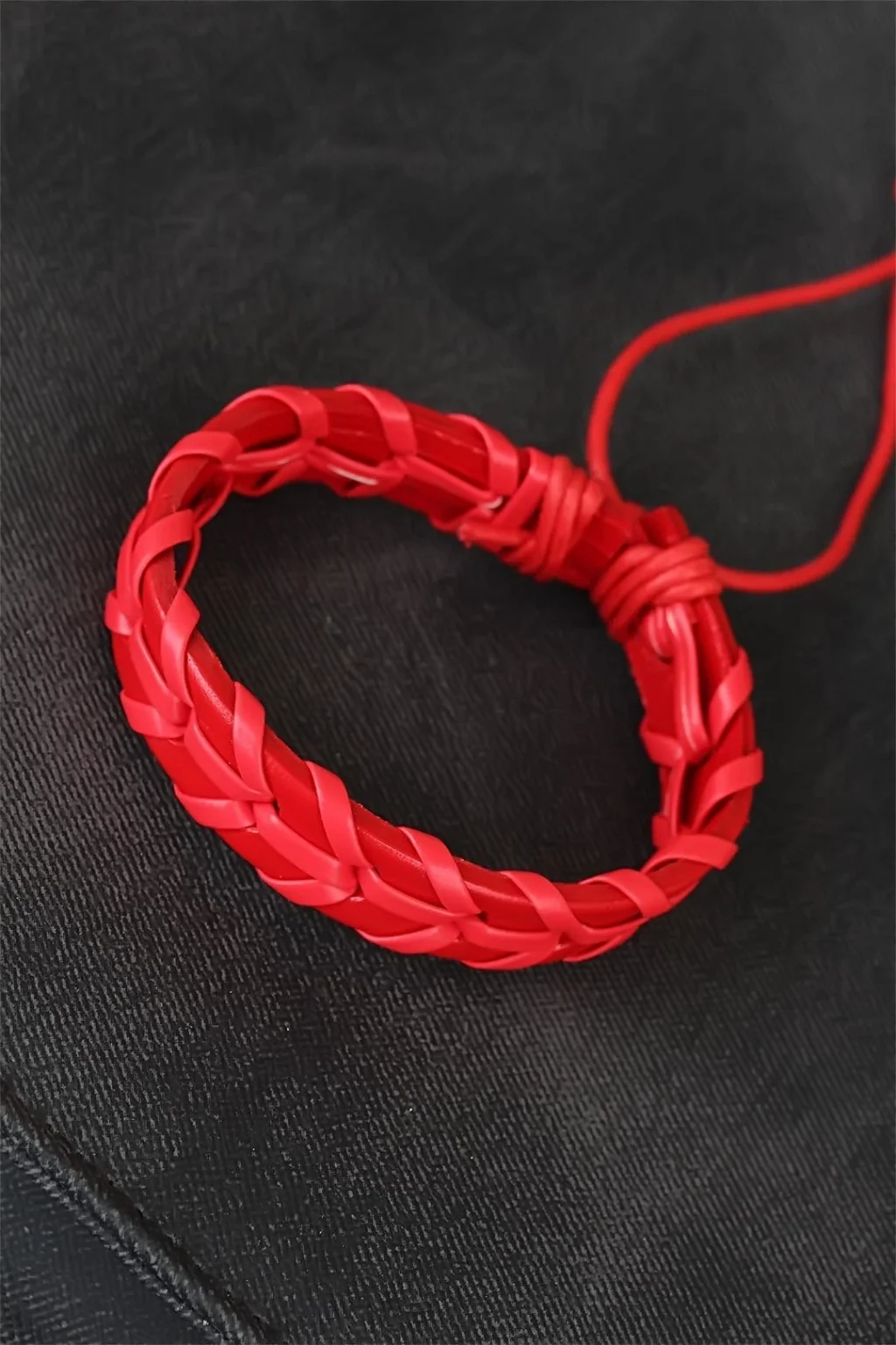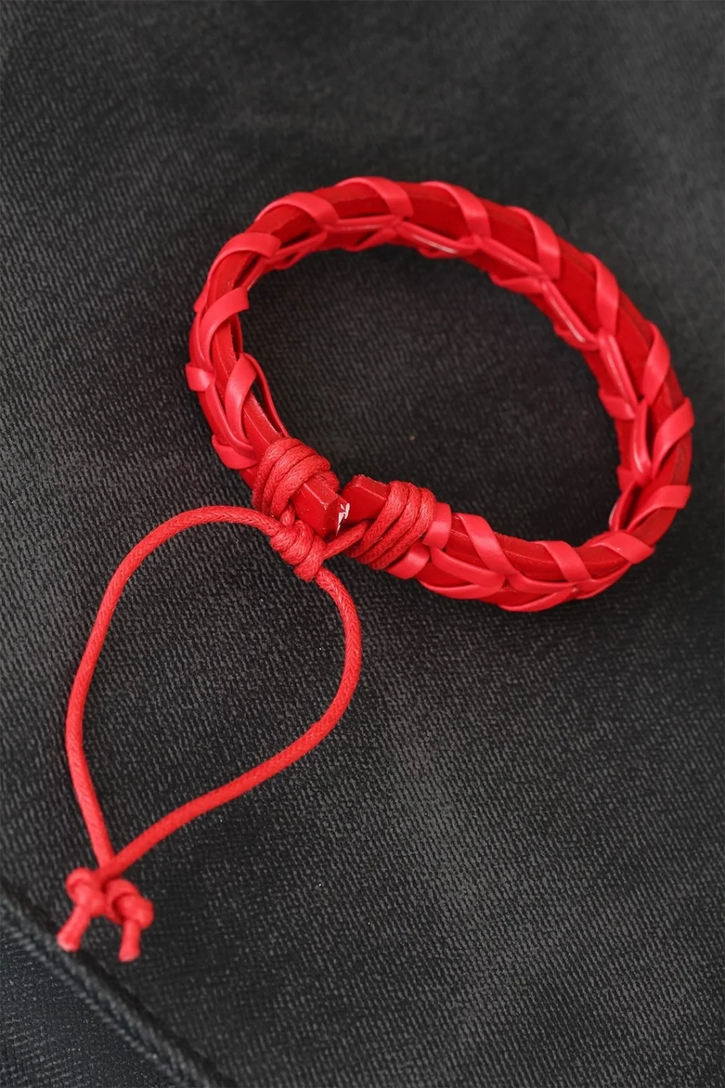 Kırmızı Örgü Deri Erkek Bileklik
