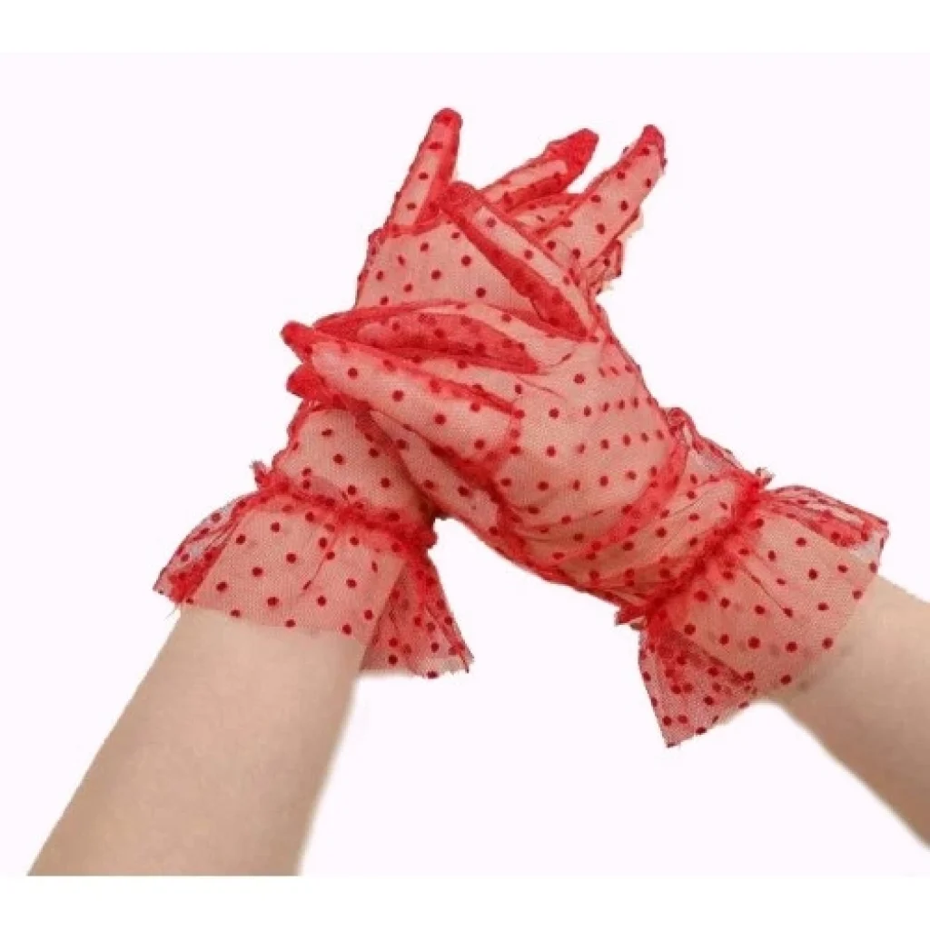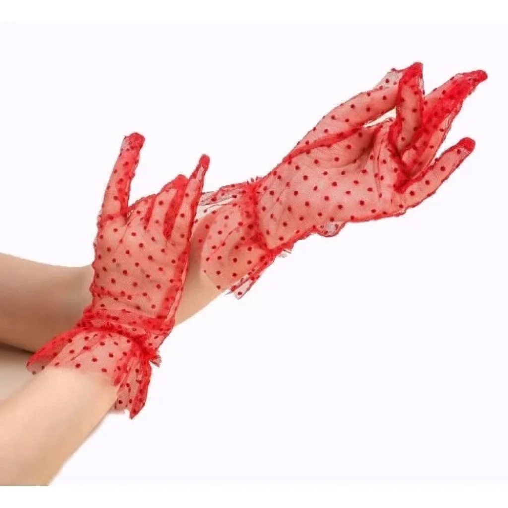 Kısa Boy Likralı Güpürlü Yetişkin Tül Eldiven