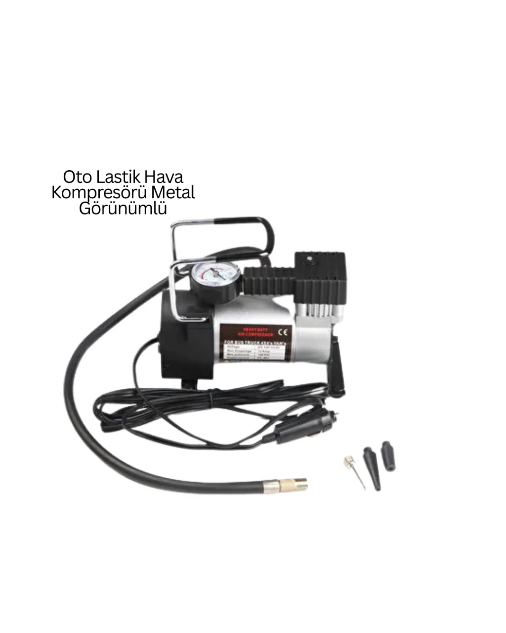 Metal gövdeli oto lastik hava kompresörü, araç sahiplerinin yol güvenliğini artırmak için tasarlanmış güçlü ve dayanıklı bir araç aksesuarıdır. DC 12V ile çalışan bu kompresör, aracın çakmak girişine bağlanarak harici güç kaynağına ihtiyaç duymadan kolayca kullanılabilir. Kompakt yapısı sayesinde araç bagajında az yer kaplar ve her an hazır bulunur.Kutu üzerinde belirtilen 140 PSI (965 kPa) maksimum basınç kapasitesi, otomobil, motosiklet, bisiklet, SUV ve 4x4 araç lastiklerini hızlı ve etkili şekilde şişirme imkânı sunar. 35 litre/dakika hava çıkışı, acil durumlarda zaman kaybetmeden müdahale edilmesini sağlar. Ürün üzerinde yer alan entegre basınç göstergesi (manometre) sayesinde lastik basıncı anlık olarak takip edilebilir ve ideal seviyede ayarlanabilir.Metal ve kaliteli ABS plastikten üretilmiş gövdesi, kompresörü darbelere, titreşime ve zorlu hava koşullarına karşı dayanıklı hale getirir. 10 Amper maksimum akım değeri, cihazın dengeli ve güvenli bir şekilde çalışmasını sağlar. 12–15 dakika kesintisiz çalışma süresine sahip olan ürünün, uzun süreli kullanımlarda ısınabileceği göz önünde bulundurularak kullanım sonrası kısa bir soğuma süresi verilmesi önerilir.Kutu içeriğinde bulunan 3 adet meme adaptörü, kompresörün yalnızca araç lastikleriyle sınırlı kalmayıp top, bisiklet ve çeşitli şişme ürünlerde de kullanılmasına olanak tanır. Dayanıklı yapısı, güçlü performansı ve pratik kullanımıyla metal gövdeli oto hava kompresörü, her sürücünün araçta bulundurması gereken güvenilir bir yardımcıdır.