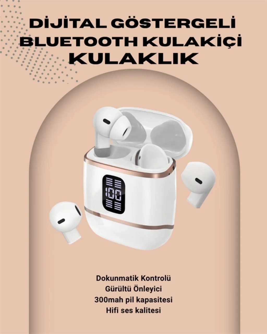 Kulakiçi Bluetooth Kulaklık V5.3 – 4’lü Set, Dijital Ekranlı, Gürültü Engelleme