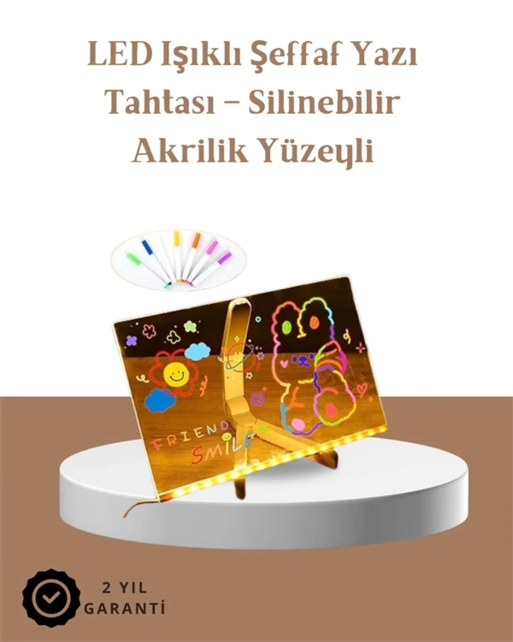 LED Aydınlatmalı Şeffaf Mesaj Tahtası – 30x20 cm, Neon Etkili Yazılar İçin Tasarlandı