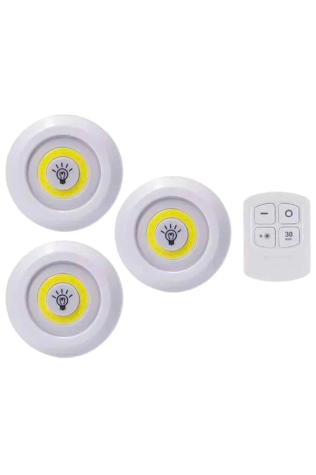 Işık rengi :Beyaz (gün ışığı)Işık pil tipi: 3 x aaa pil (dahil değildir)Uzaktan kumanda pili tipi: 2 x aaa pil (dahil değildir)Led Işık Kablosuz Uzaktan Kumandalı Dolap Içi Led Ampul Seti 3lü Set Gece Lambası Spot LambaUzaktan Kumandalı 3 Lü Ayarlanabilir Spot LED Işık Kablosuz Lamba Kumandalı Işık Ayarlanabilir 3lü Led IşıkPilli Süre Ayarlı · Çok şık ve kullanışlı modern bir üründür.Kaliteli malzemeden hoş bir görünüme sahiptir.Yapısı ile pratik kolay kullanım sunuyor. ·Temizliği de çok kolay olan sıcak görünümü ile şıklık katacakDekoratif · Estetik Ve kullanışlı · Şık tasarım · Kanserojen madde içermez · Kaliteli ham maddeden üretilmiştir.Led light with remote control set of 3 · Işık derecesini ayarlayabilirsinizYanma süresini ayarlayabilirsinizUzaktan kumanda ile kontrol edilir · Her türlü zemine kolay montaj edilir ·Güçlü led ışığa sahiptir · 3 lü set olarak gönderilirIşık pil tipi: 3 x aaa pil (dahil değildir)Uzaktan kumanda pili tipi: 2 x aaa pil (dahil değildir)Işık rengi :Beyaz (gün ışığı)Gövde malzemesi :Sert plastikAmpul ömrü: 100.000 saatKullanım Alanları: Avcılık, kamp, ev, okul, araba, otel, restoranÜrün Boyutlar: 9 cm - 2 cm