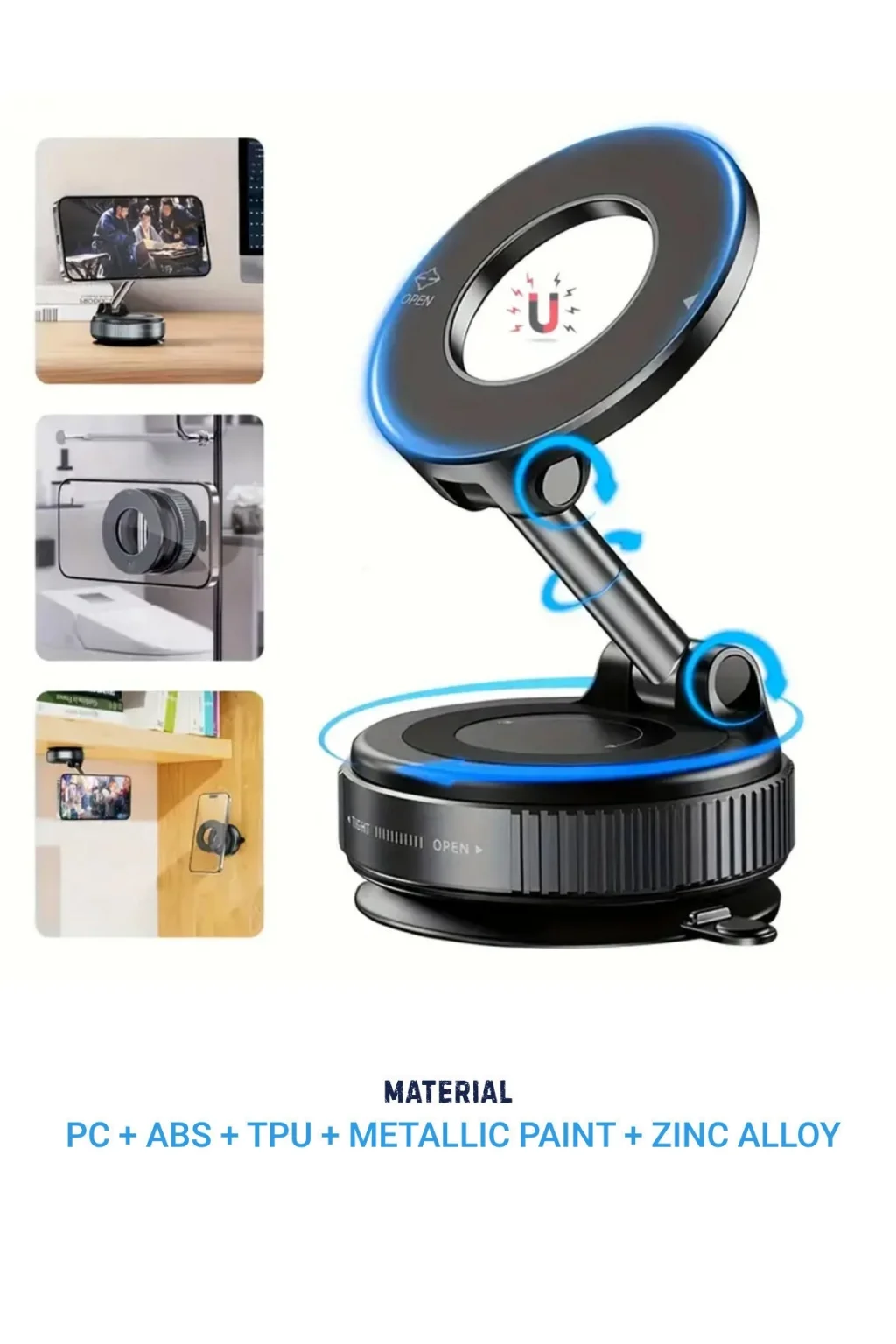 Magsafe Uyumlu 360 Döner Vakumlu Araç Masa ve Duvar Tipi Halka Telefon Tutucu Standı