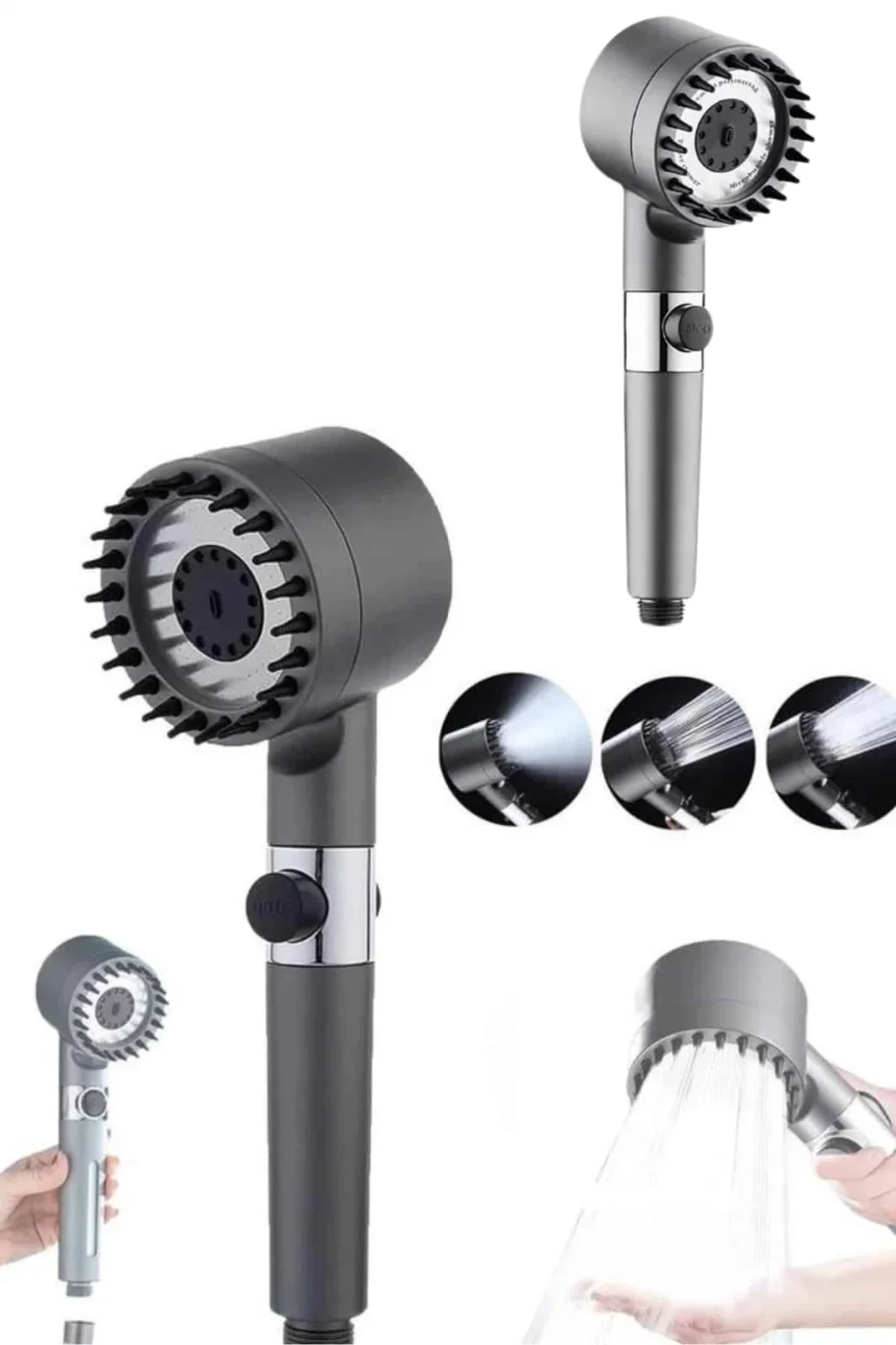Çok Fonksiyonlu 4 Kademeli El Duşu Seti Spiral Hortumlu Banyo Duş Başlığı