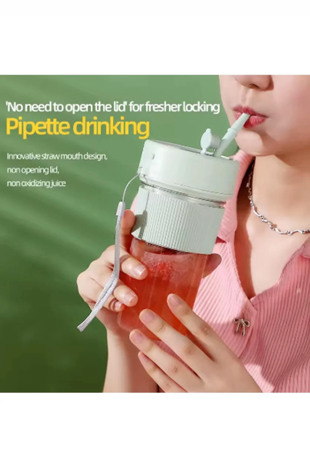 Yenilikçi pipet tasarımımız, kapağı açmak zorunda kalmadan doğrudan içmeye izin verir, meyvenin en taze halini kilitleyin