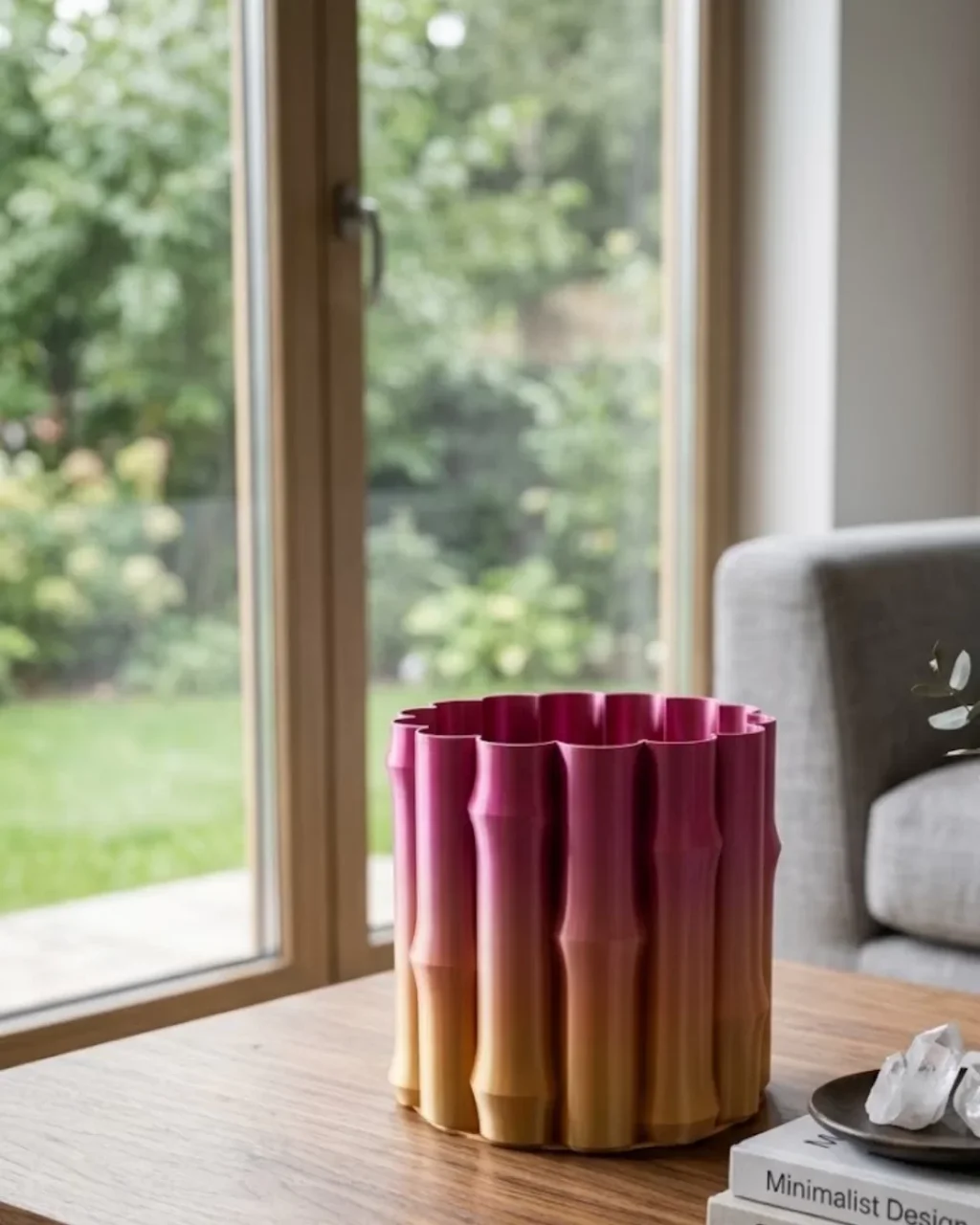 Pembe Lila Degrade Kıvrımlı 3D Vazo Estetik Ev Ofis Dekoru
