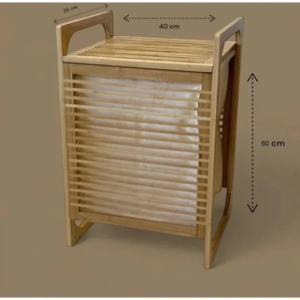 Orta Boy Ahşap Bambu Kirli Sepeti 40x35x60